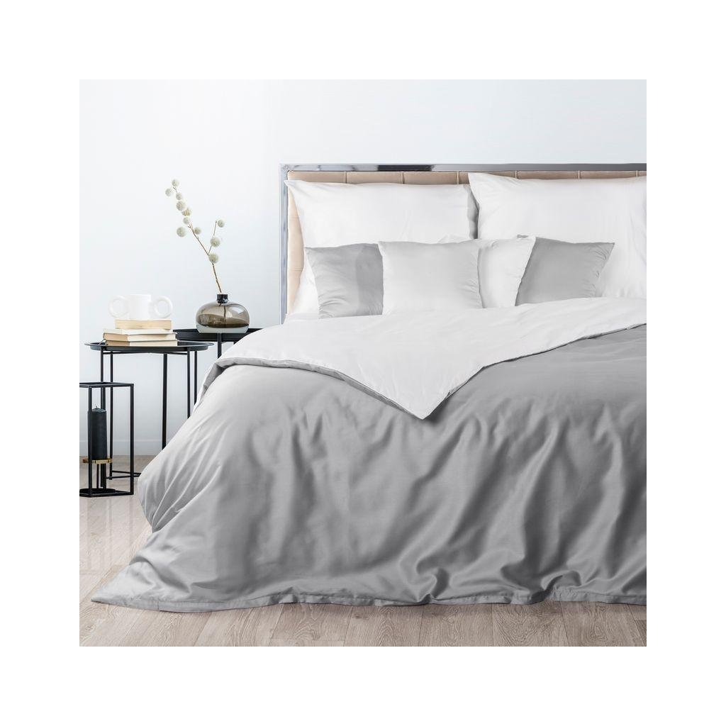 Bělošedé ložní povlečení NOVA3 z vysoce kvalitního bavlněného saténu 140x200 cm, 70x80 cm