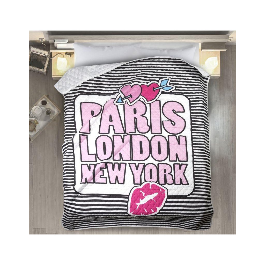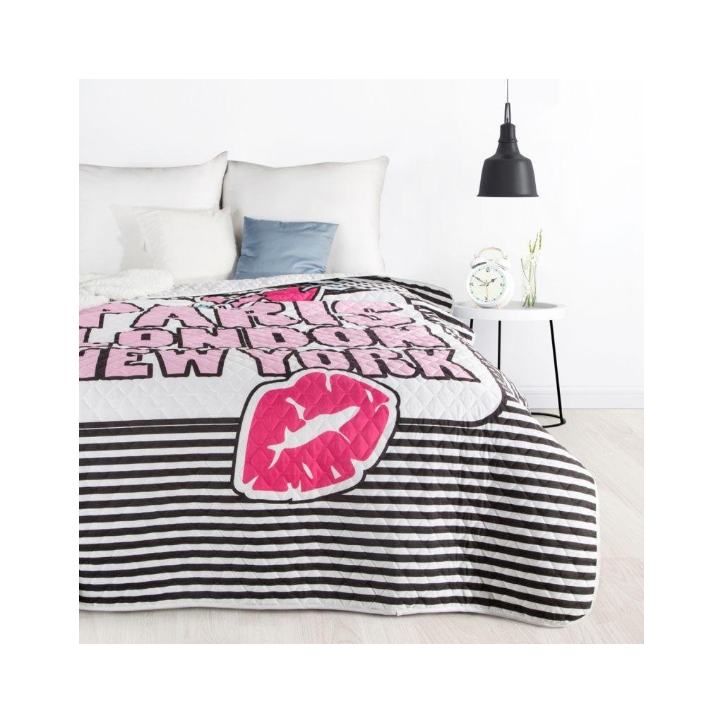 V místnosti teenagera by měla být přítomna i radost a bezstarostnost. Doporučujeme přehoz v kontrastních barvách zdobený potiskem se jmény hlavních měst. Prošívaná látka lisovaná za tepla, díky čemuž byl získán trvalý vzor a delší trvanlivost materiálu. Přehoz na postel je praktický způsob, jak udržet v ložnici pořádek a udržet ložní prádlo déle svěží. Živé barvy vnášejí do interiéru pozitivní atmosféru. Přehoz je jako stvořený pro moderní ložnici v minimalistickém stylu.