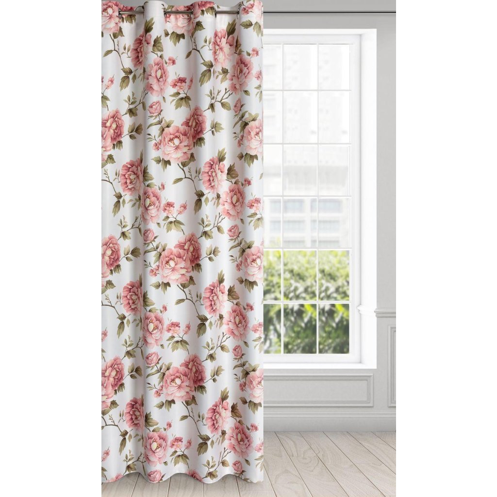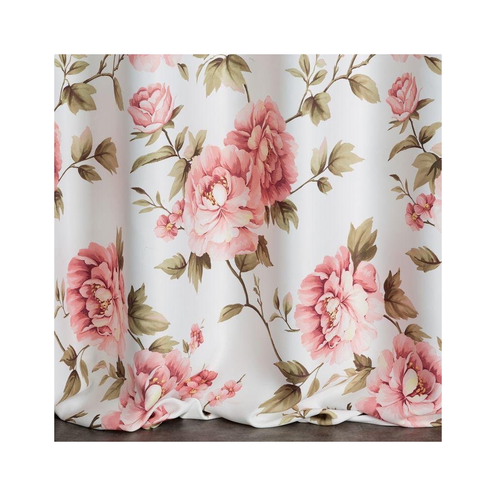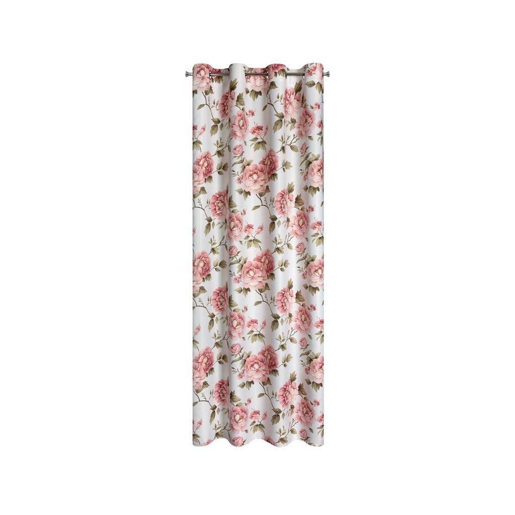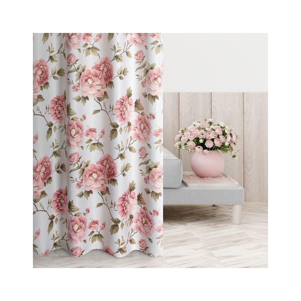 Bílý zatemňovací závěs na kroužcích TESS s motivem pivonií 140x250 cm
