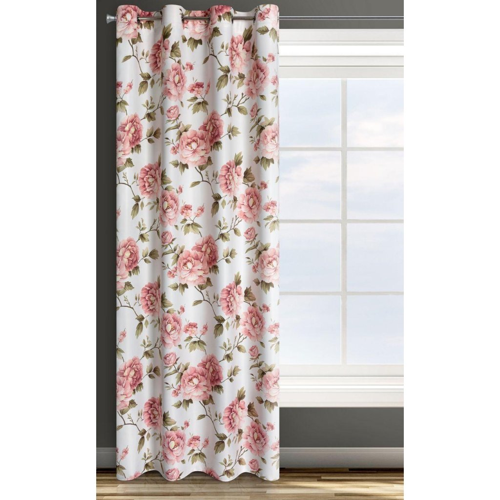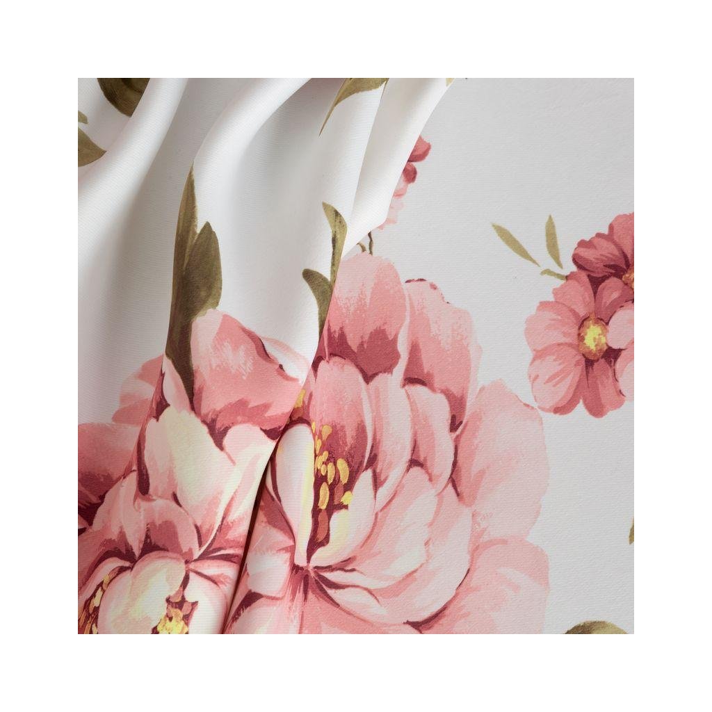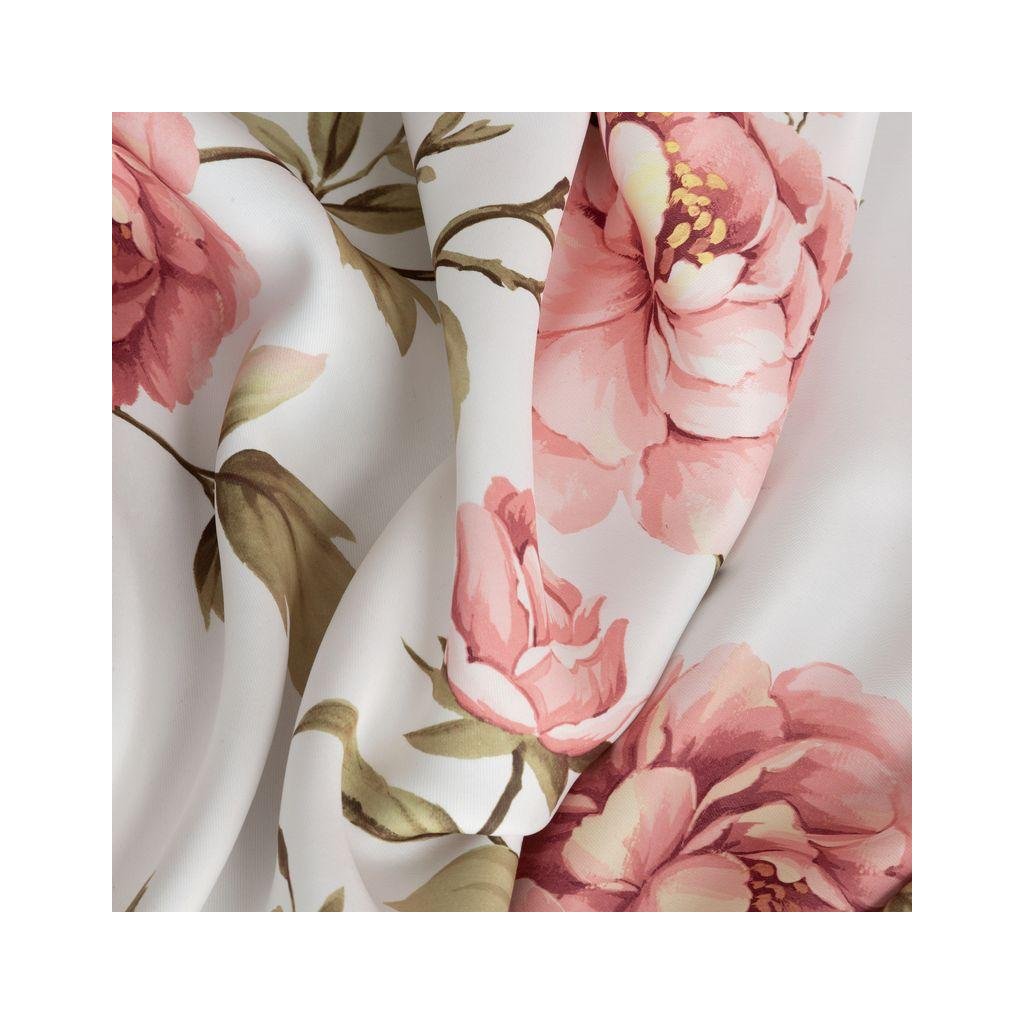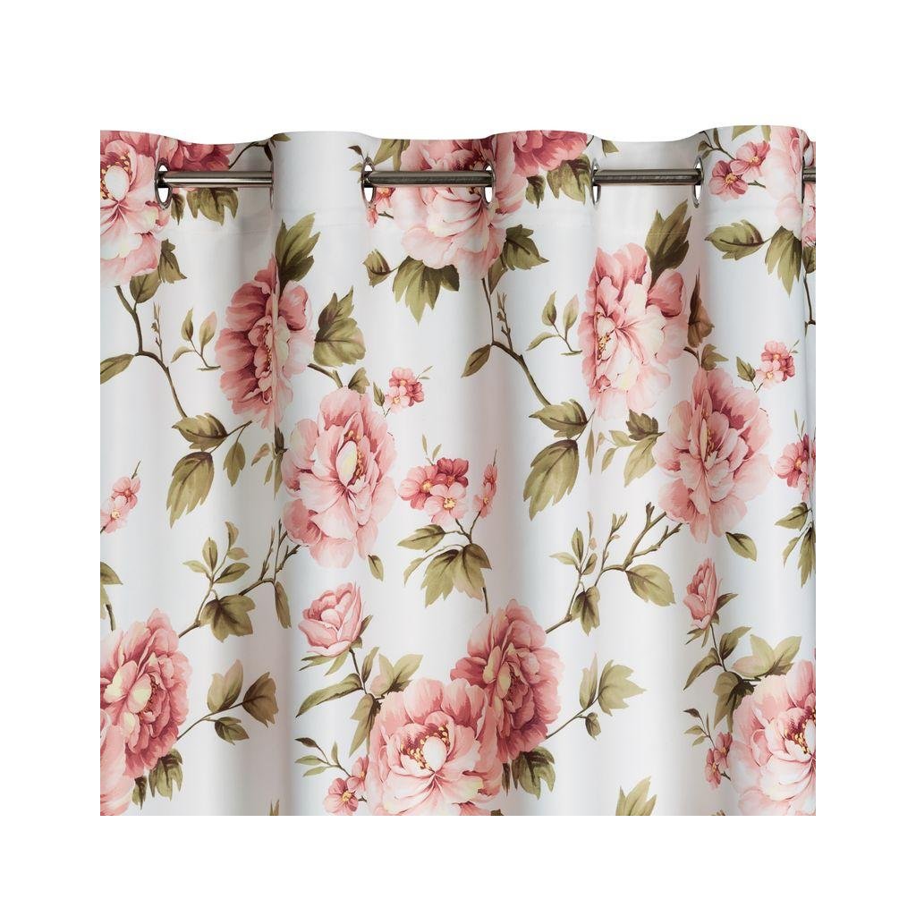 Bílý zatemňovací závěs na kroužcích TESS s motivem pivonií 140x250 cm