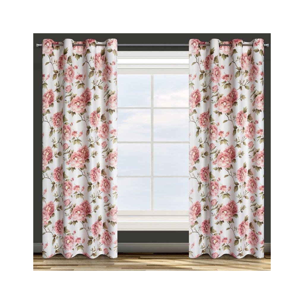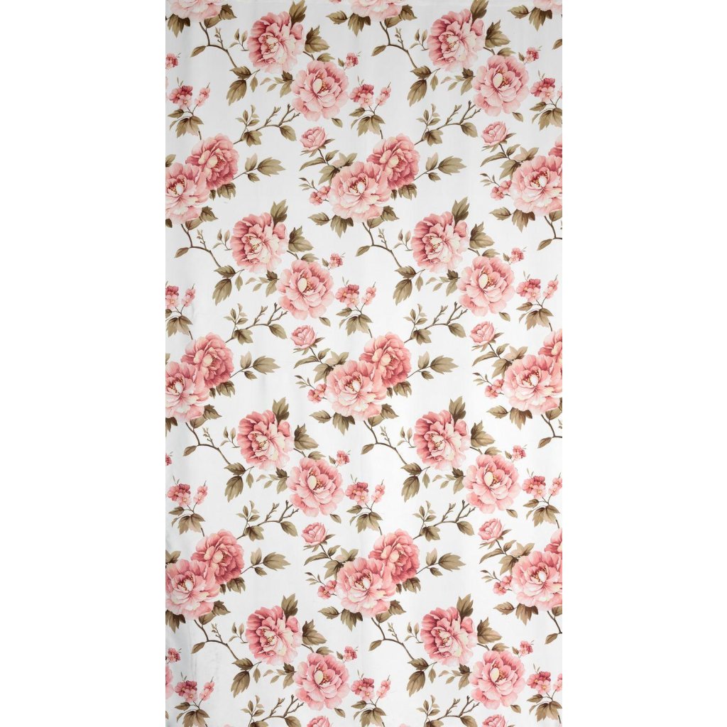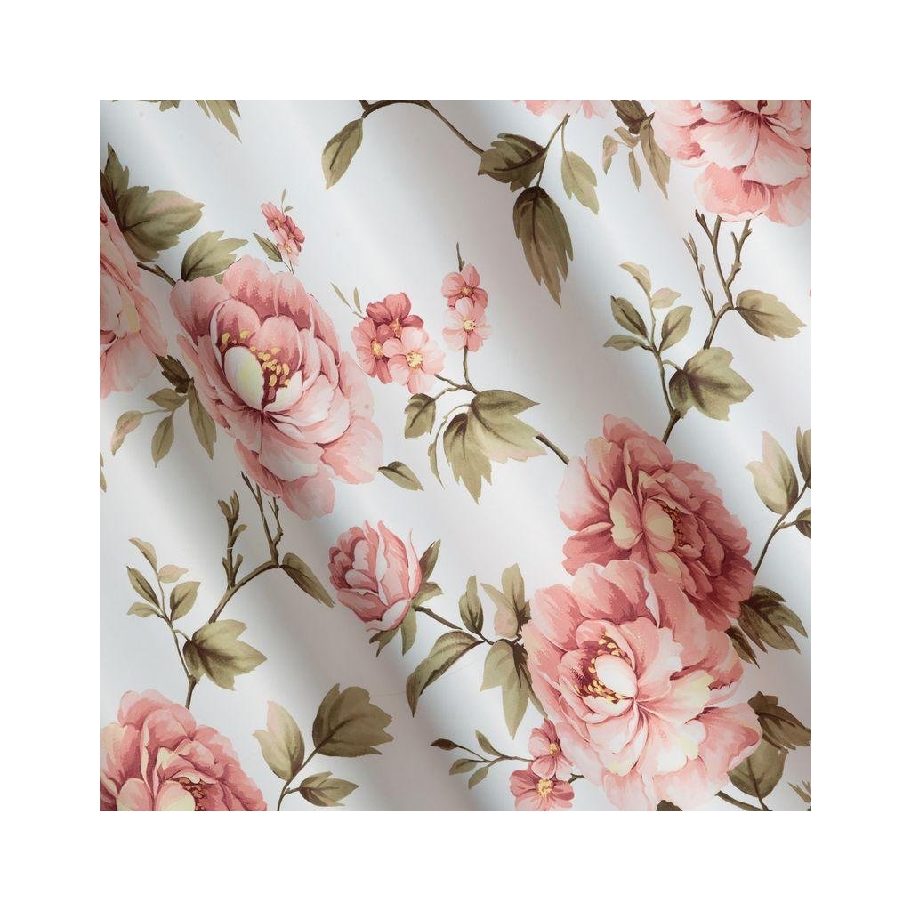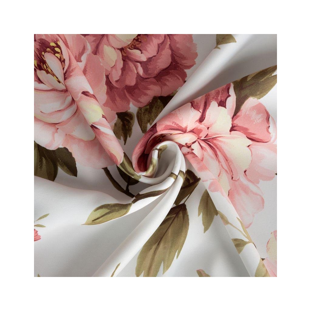 Bílý zatemňovací závěs na kroužcích TESS s motivem pivonií 140x250 cm