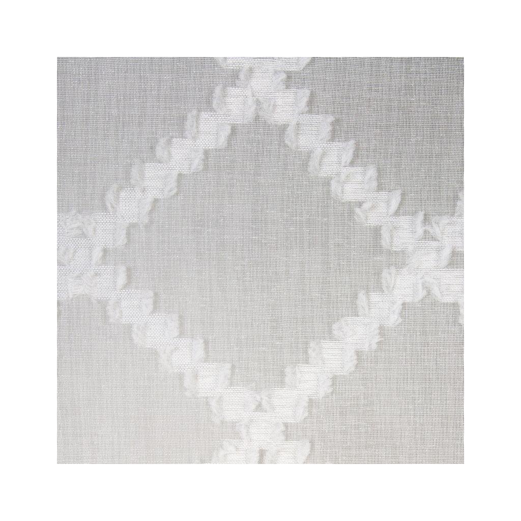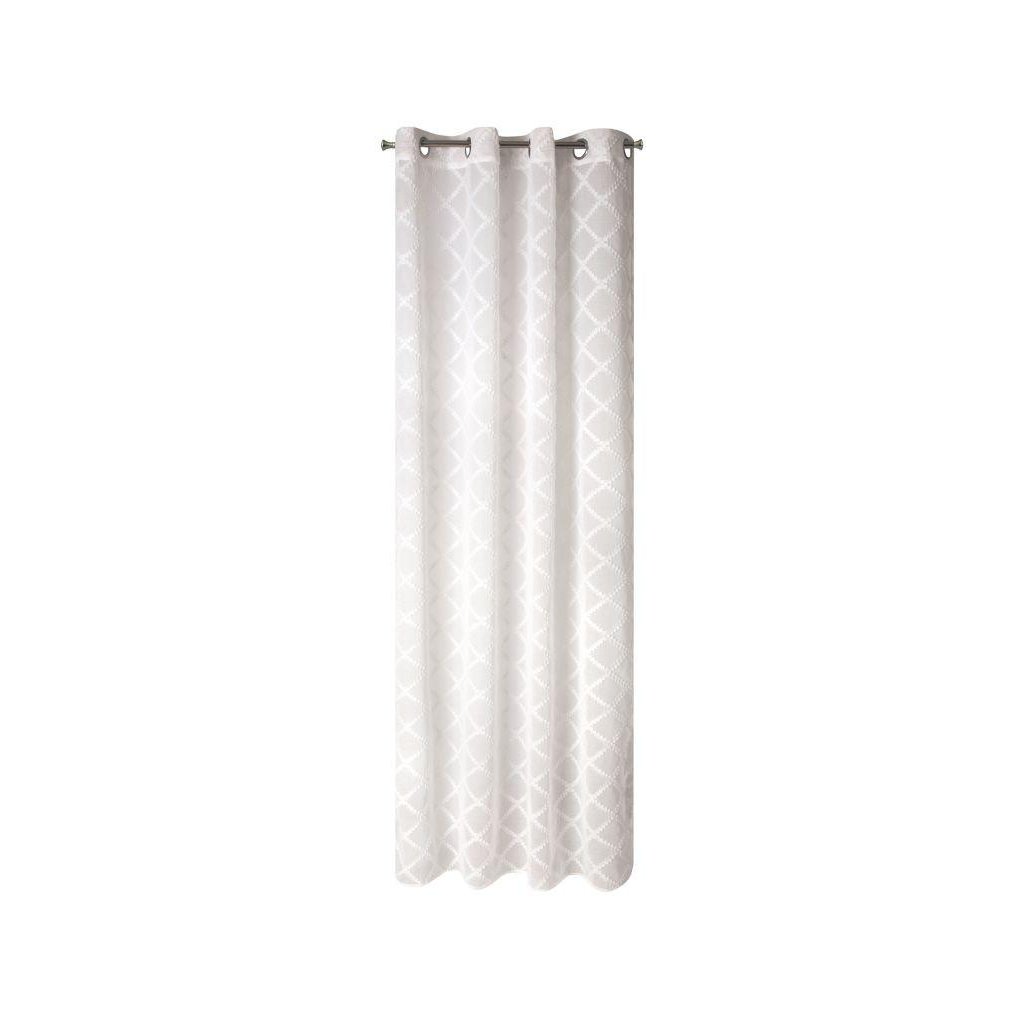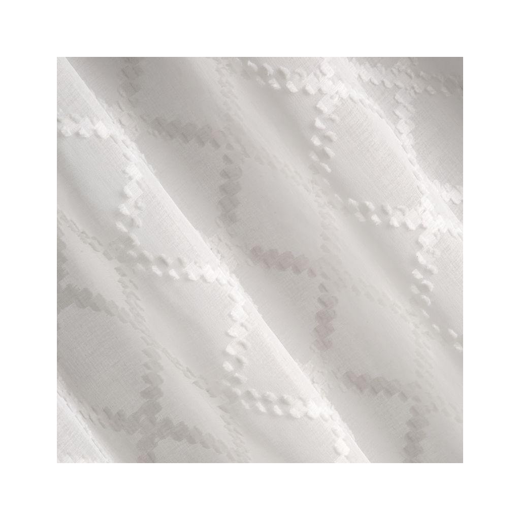 Jemný závěs BETSY z tenké a měkké látky bílé barvy, zdobený mřížkovou aplikací. Do interiéru vnáší teplo a barvu, ale nezakrývá interiér. Šířka 140 cm, délka 250 cm.