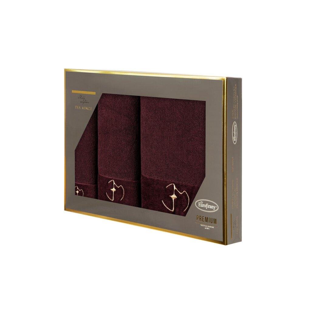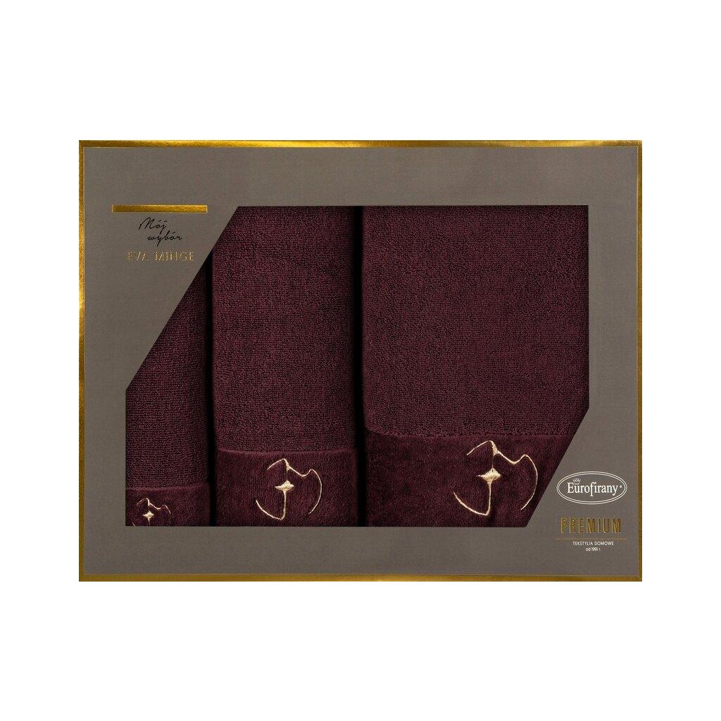 Sada obsahuje tři ručníky různých rozměrů: největší má rozměry 70 x 140 cm, střední měří 50 x 90 cm a nejmenší má rozměry 30 x 50 cm. Všechny tři jsou odstínu elegantní bordó barvy, která dodá vaší koupelně jedinečný styl.