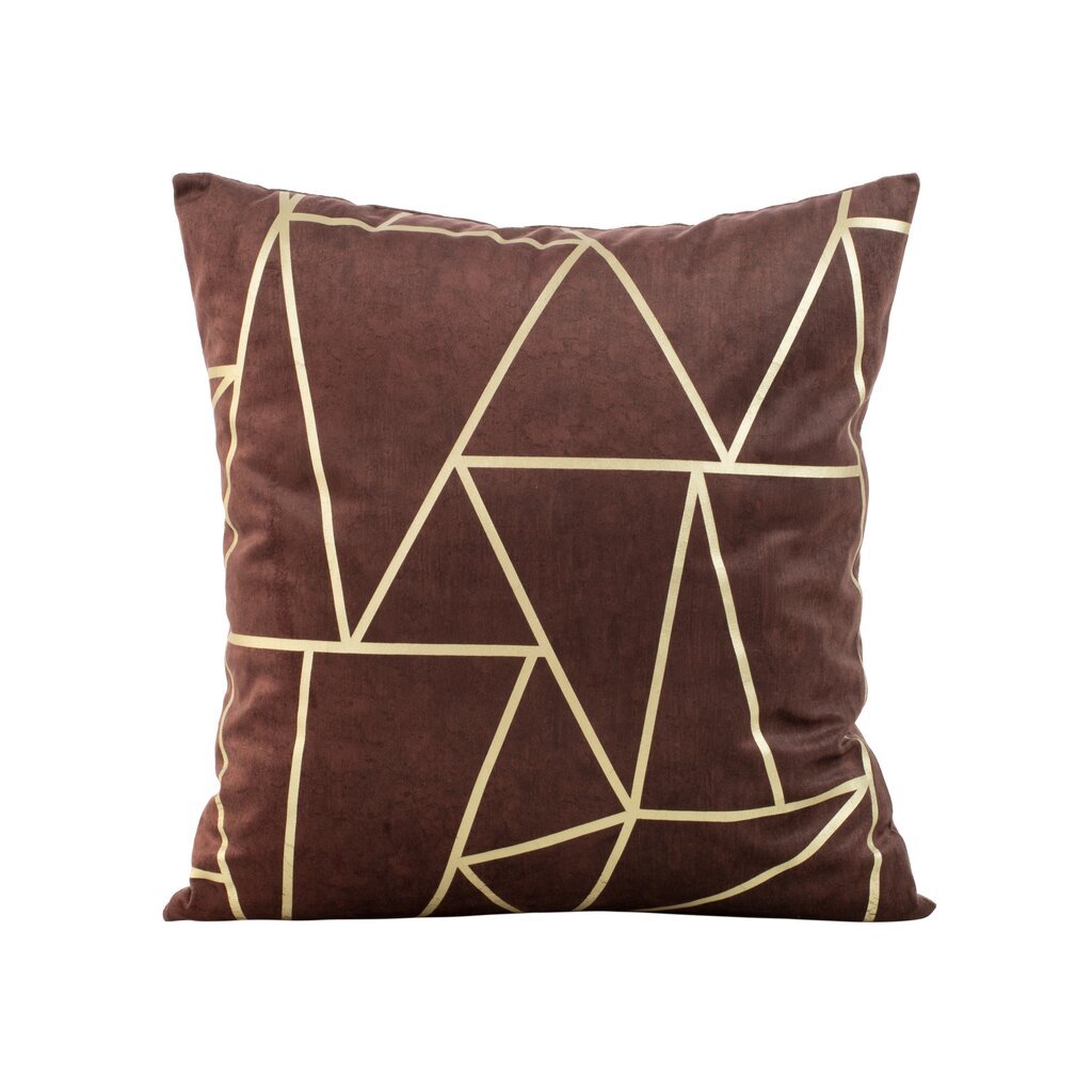 Bordový sametový povlak na polštář se zlatým geometrickým potiskem MOLY 45x45 cm