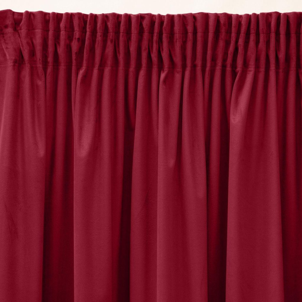 Jednobarevný bordó zatemňovací závěs SIBEL z hrubší a hebké sametové látky. Šířka: 140 cm, délka: 270 cm. Gramáž: 260 g/m2. Složení: 100% polyester. Lehké žehlení a praní. Praktické zavěšení na řasící pásce.