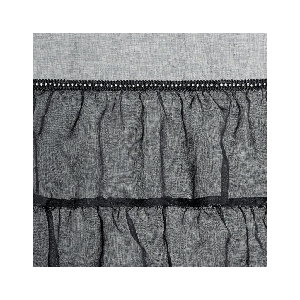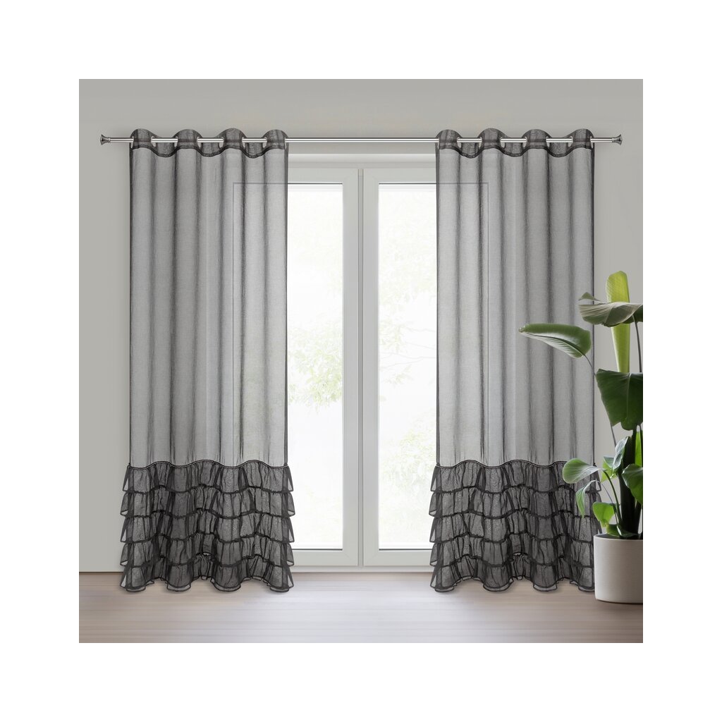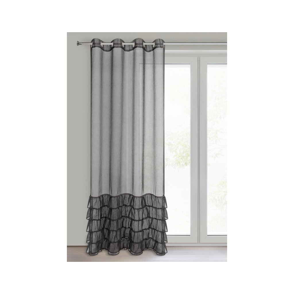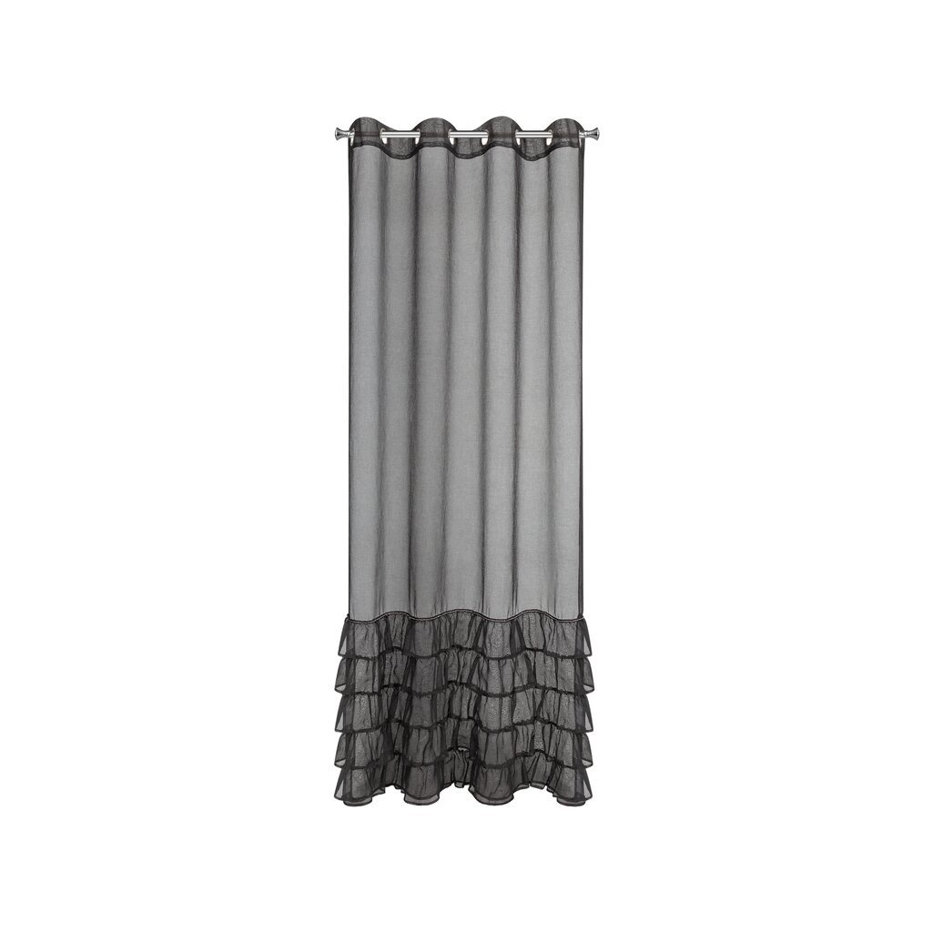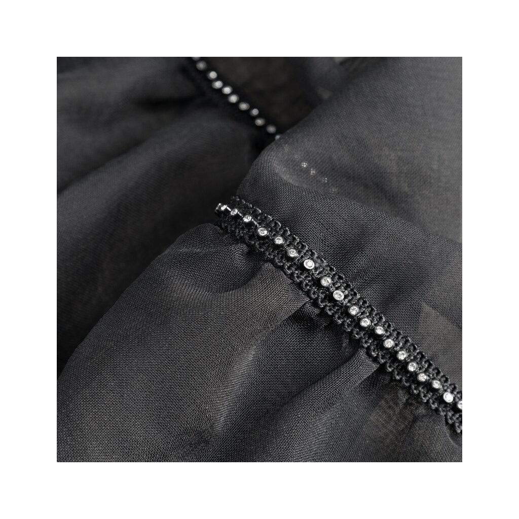 Černá záclona s volány a lesklým páskem krystalů na kroužcích CARLI 140x250 cm