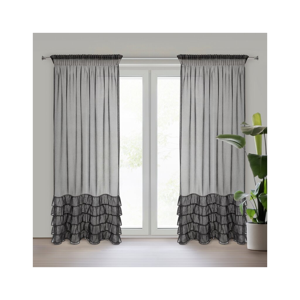 Černá záclona s volány a lesklým páskem krystalů na pásce CARLI 140x270 cm