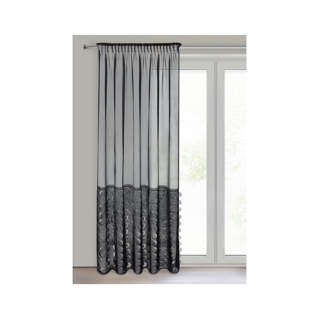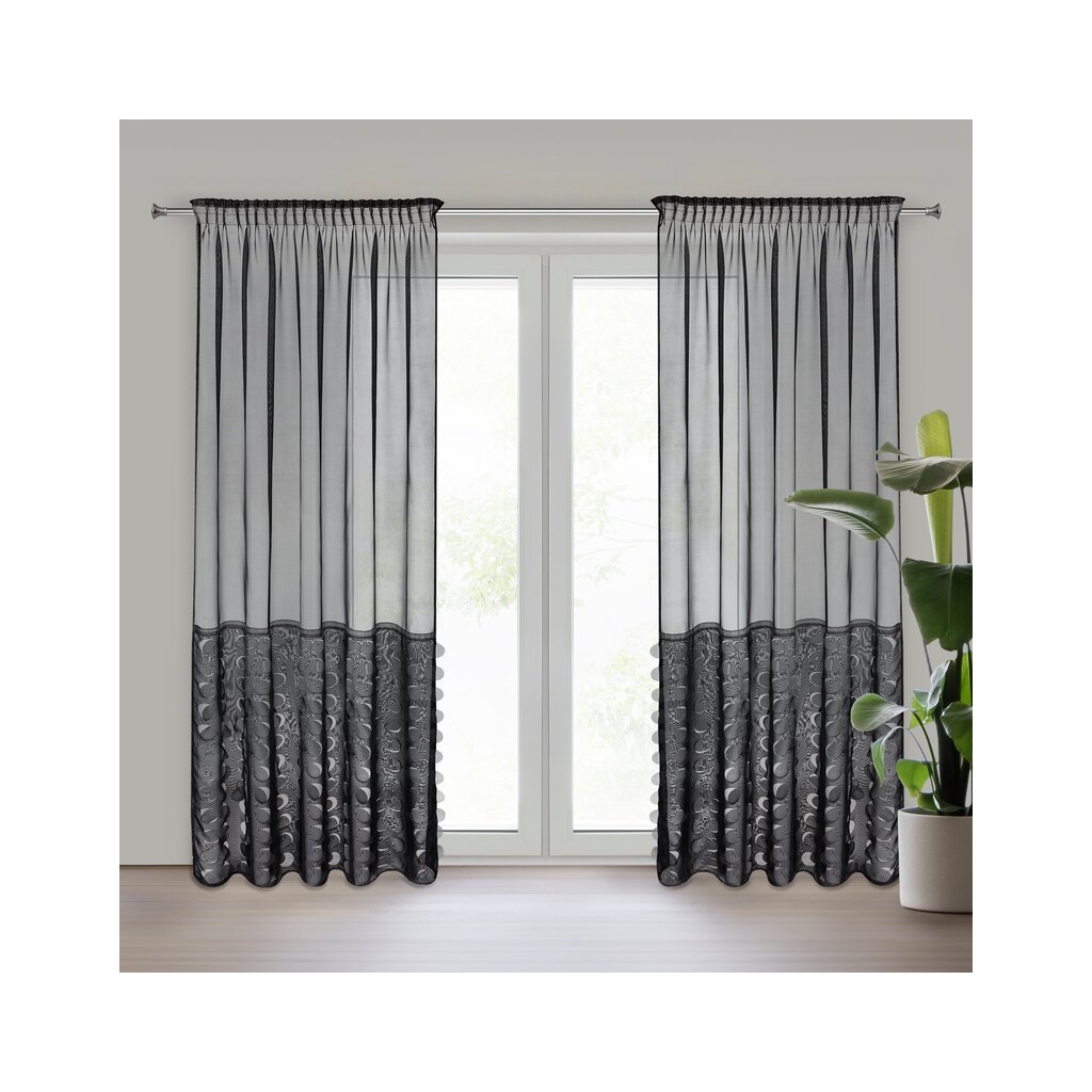 Černá záclona z voálu se vzorem kruhů na pásce DEBORA 140x270 cm