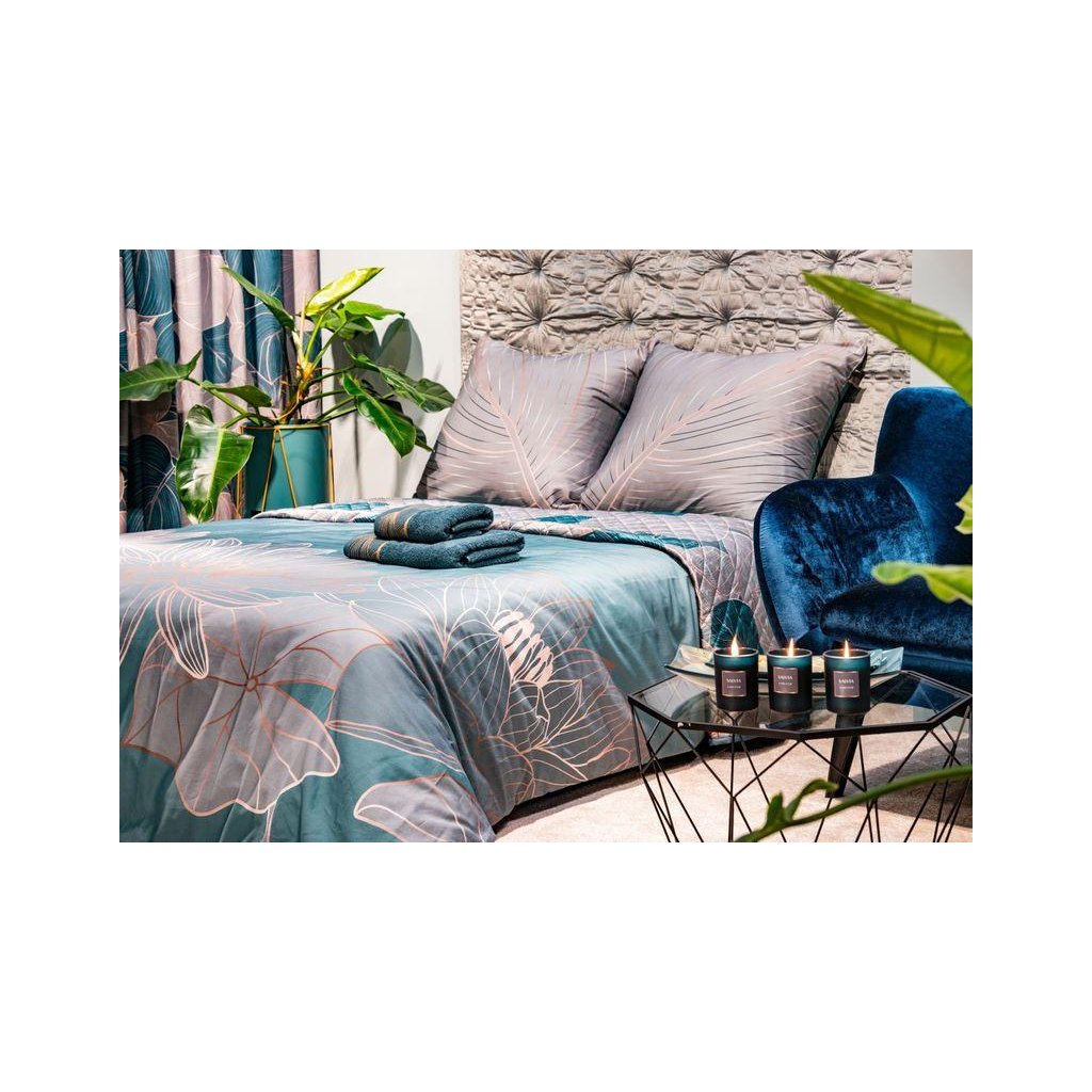 Kolekce SALVIA nabízí vášeň, lásku k interiéru a citlivost ke kráse. Jemné uklidňující barvy, botanické motivy v růžovém zlatě a motivy květu lilie z růžového zlata zdobí ložní povlečení a přikrývky. Kolekce SALVIA vám zaručí prvotřídní kvalitu - měkkost povlečení z kvalitního makosatinu a Tencelu, nadýchanost a vysokou savost ručníků, kvalitu sametových závěsů a dekoračního povlečení na polštáře.