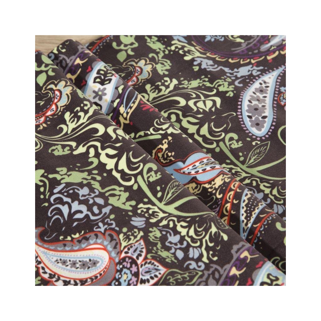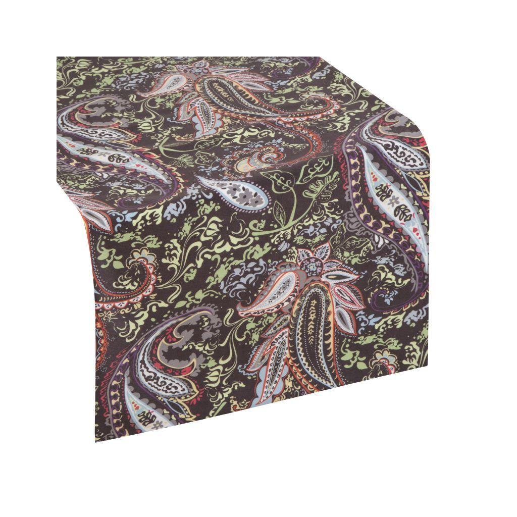 Originální sametový běhoun, zdobený barevným potiskem s charakteristickým motivem paisley. Šířka: 35 cm, délka: 140 cm. Složení: 100% polyester