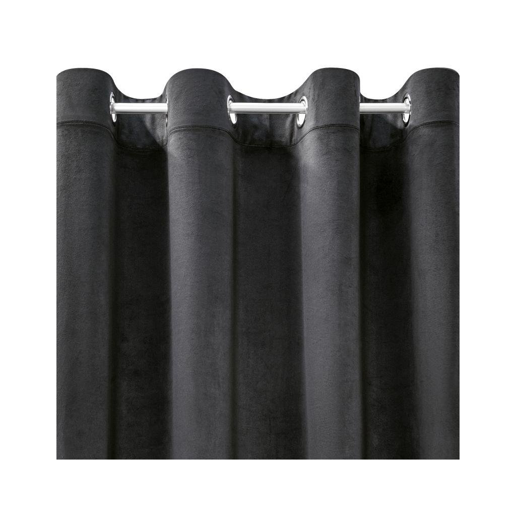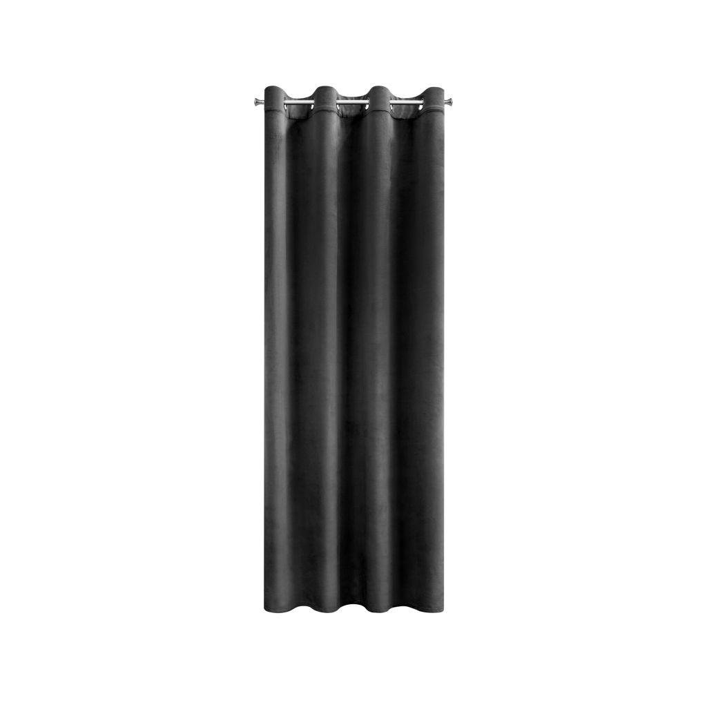 Sametový jednobarevný černý závěs. Sametová látka o hustotě 200g/m2 poskytuje střední stupeň vnitřního zatemnění. Šířka: 140 cm, délka: 250 cm. Složení: 100% polyester. Praktické zavěšení na kovových kroužcích.