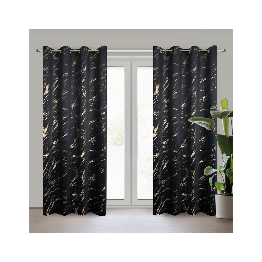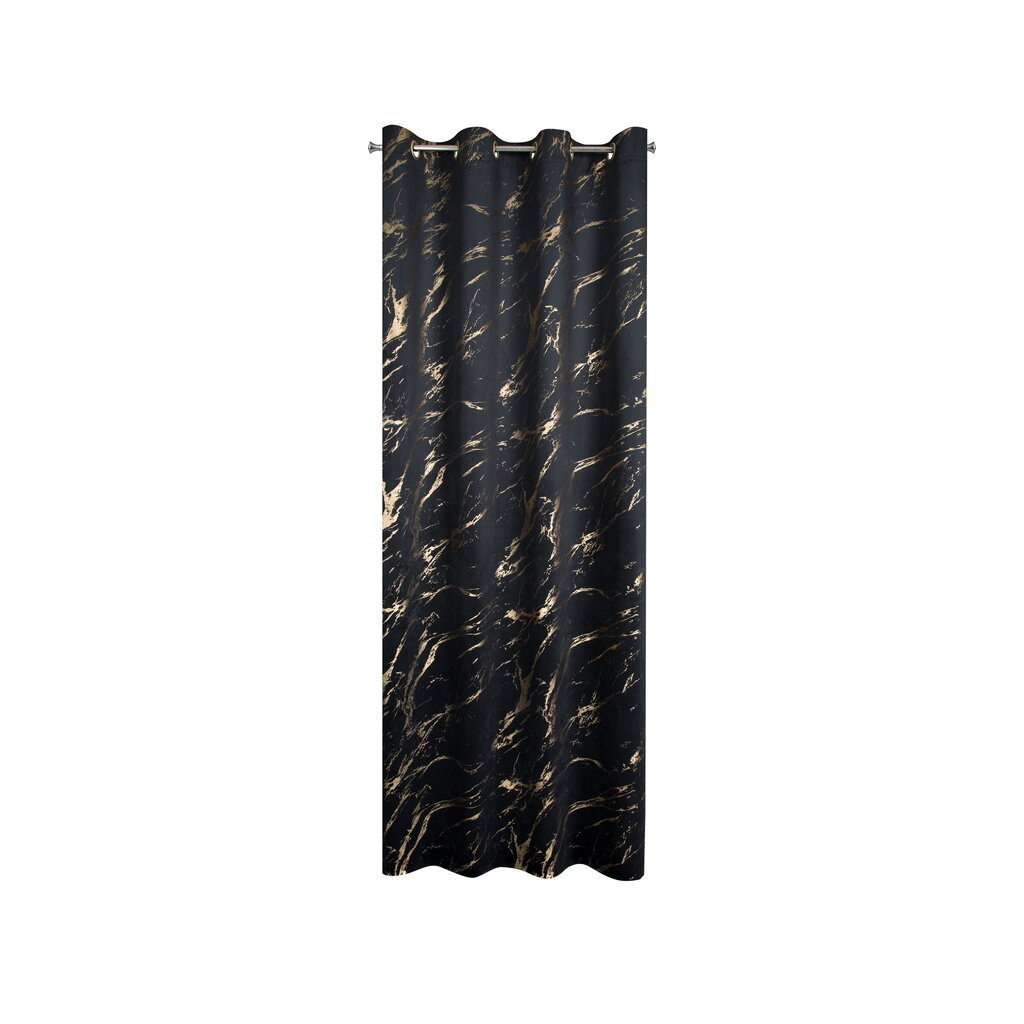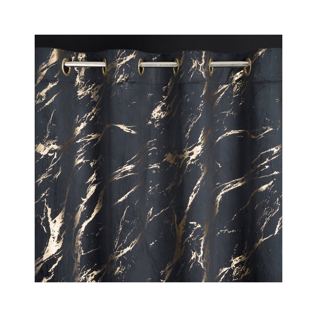 Černý sametový závěs s lesklým mramorovým efektem na kroužcích MOLLY 140x270 cm