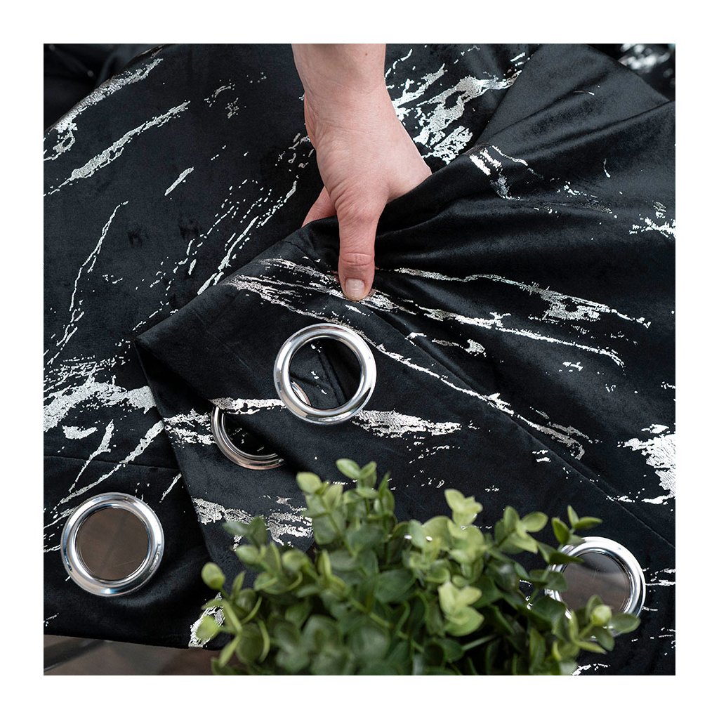 Černý sametový závěs se stříbrným potiskem na kroužcích MARMA 140x250 cm