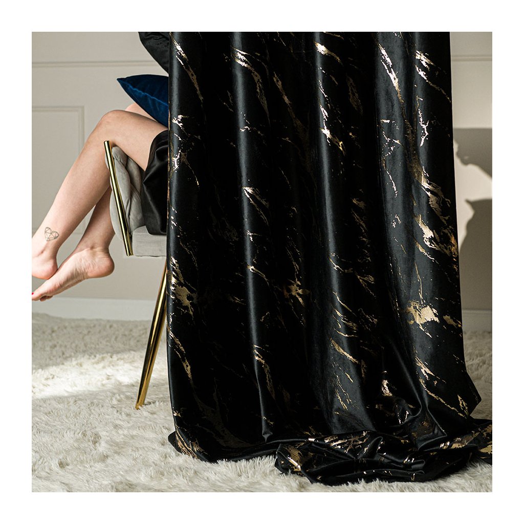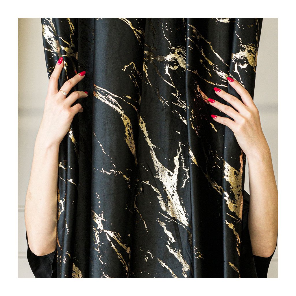 Luxusní sametový závěs MARMA s metalickým mramorovým potiskem propojí eleganci a moderní styl . Hustě tkaný samet krásně splývá, má jemný noblesní lesk a na okně vytváří galerijní efekt – výrazný, ale stále vkusný akcent.