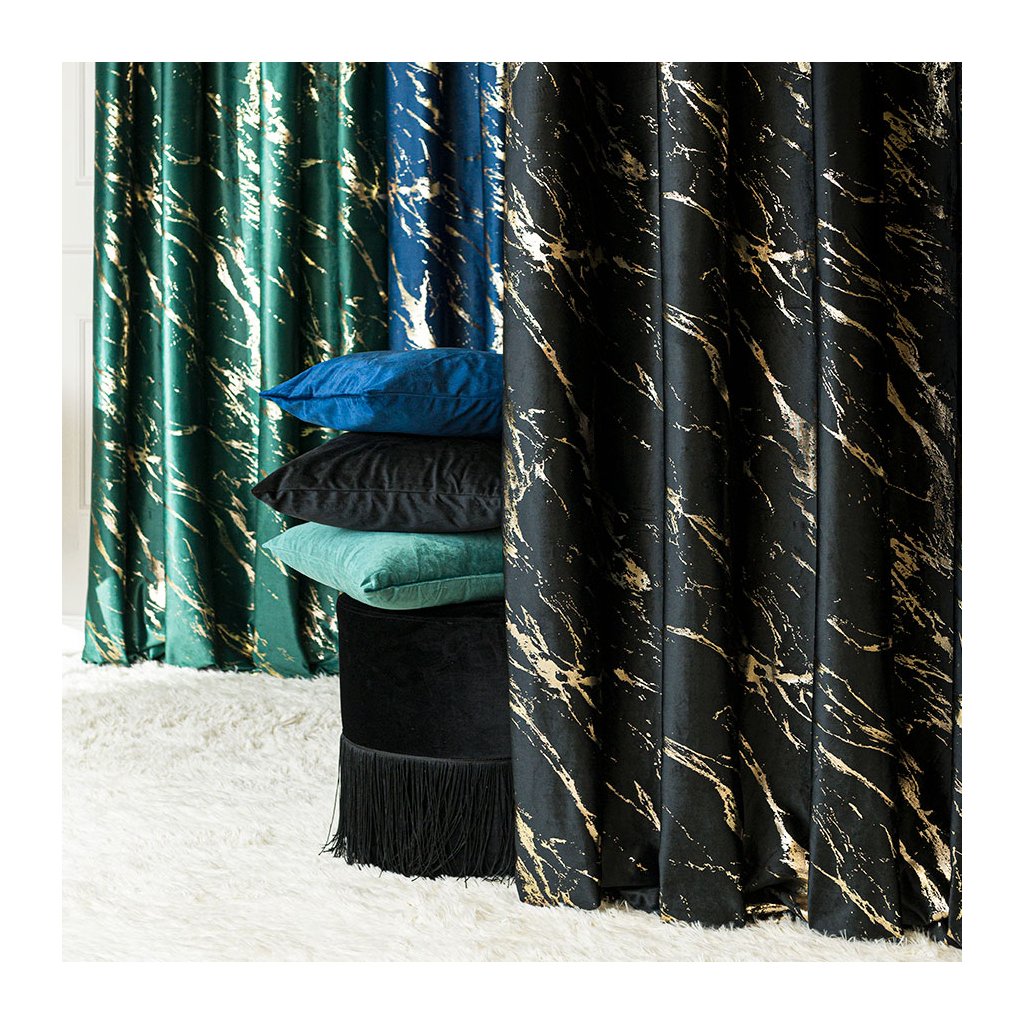 ✅ MARMA – luxusní sametový závěs s metalickým mramorovým potiskem pro elegantní akcent.