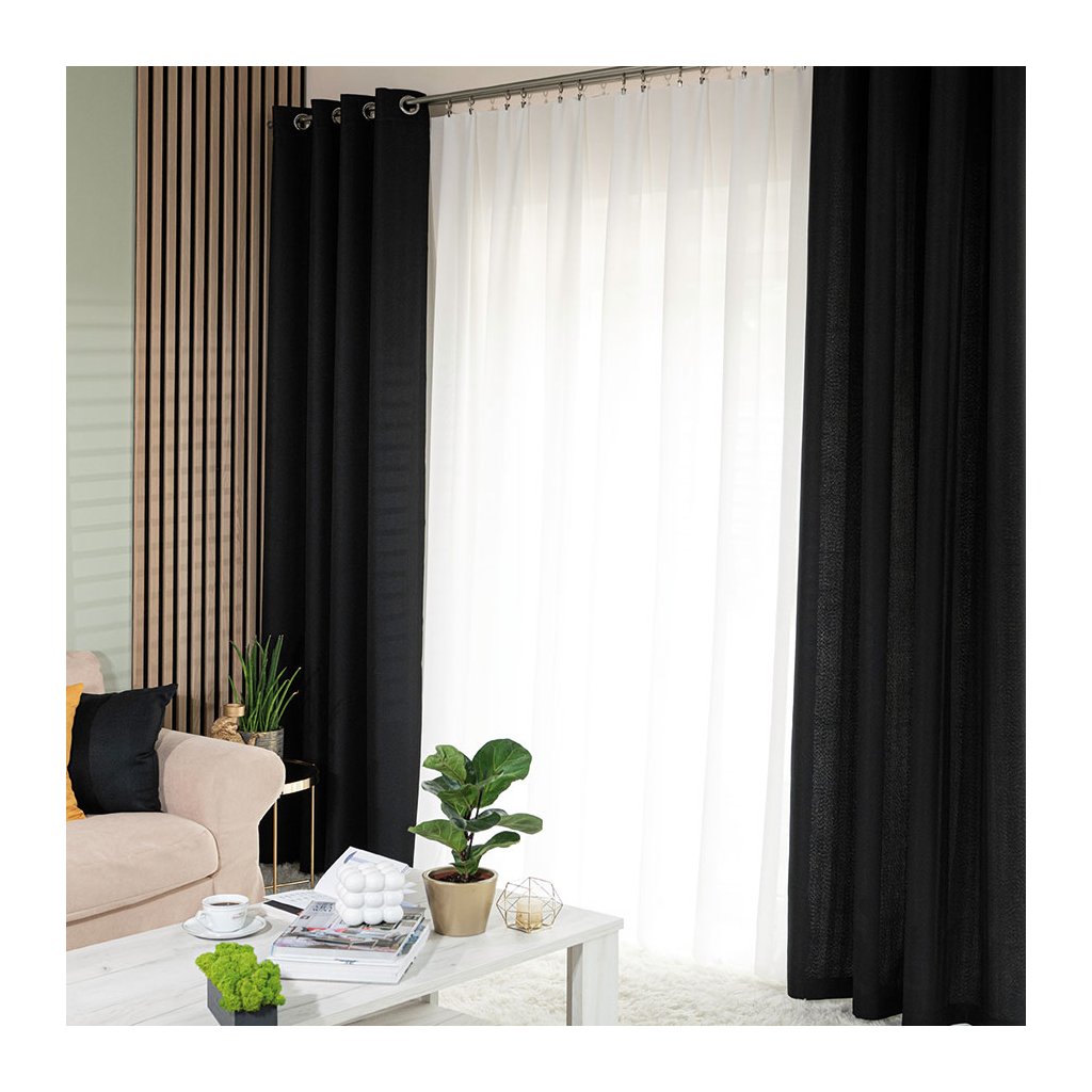 Černý závěs se vzorem rybí kost na kroužcích JODÍLKA 140x250 cm