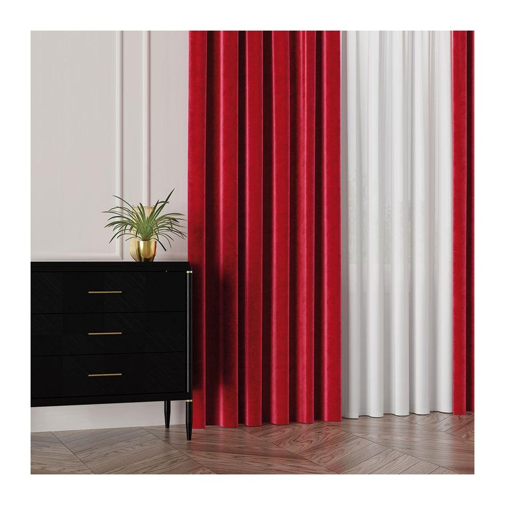 Červený závěs VELVET z měkké sametové látky