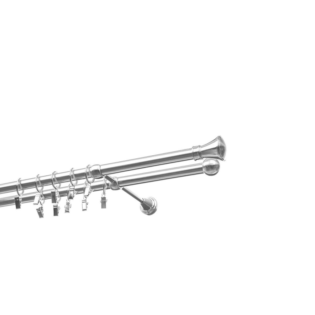 Dvojitá kovová garnýž Nerez 150 cm - koncovka Monako