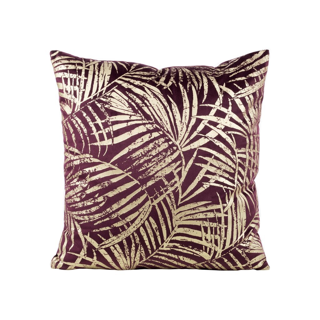 Fialový sametový povlak na polštář se zlatým potiskem botanických listů VERONA 45x45 cm