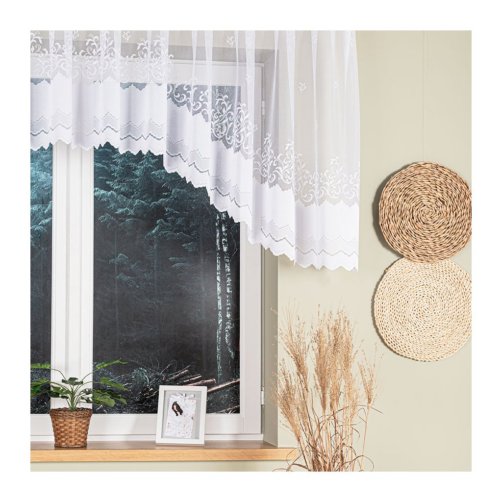 Bílá žakárová záclona GENOWEFA 400x100 cm