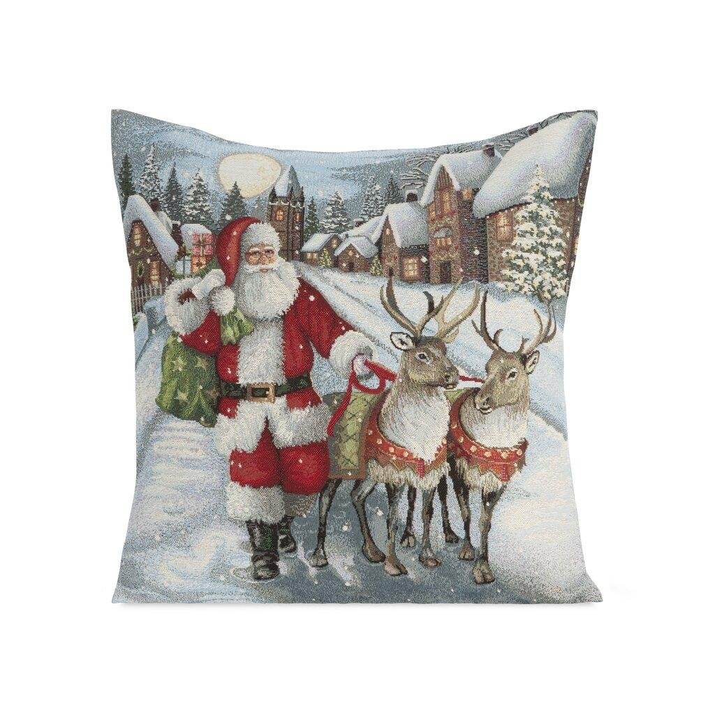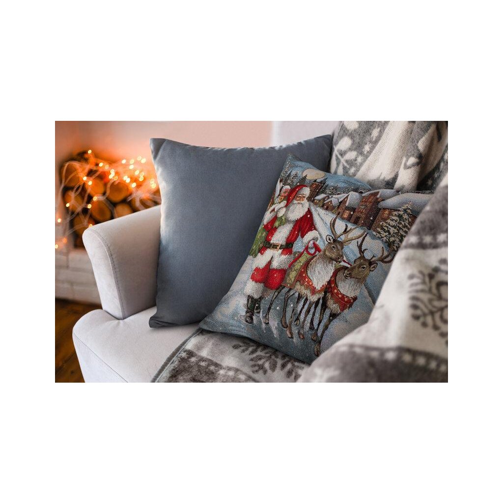 Nádherné gobelínové vánoční povlak na polštář je vyroben z pevného a kvalitního materiálu. Gobelínové povlečení je pevné stálobarevné a snadno se žehlí. Zip všitý na jedné ze stran umožňuje rychlou výměnu povlečení na polštář. Povlak je zdobený z obou stran. Můžete ji využít v obývacím pokoji, jídelně nebo v dětském pokoji.