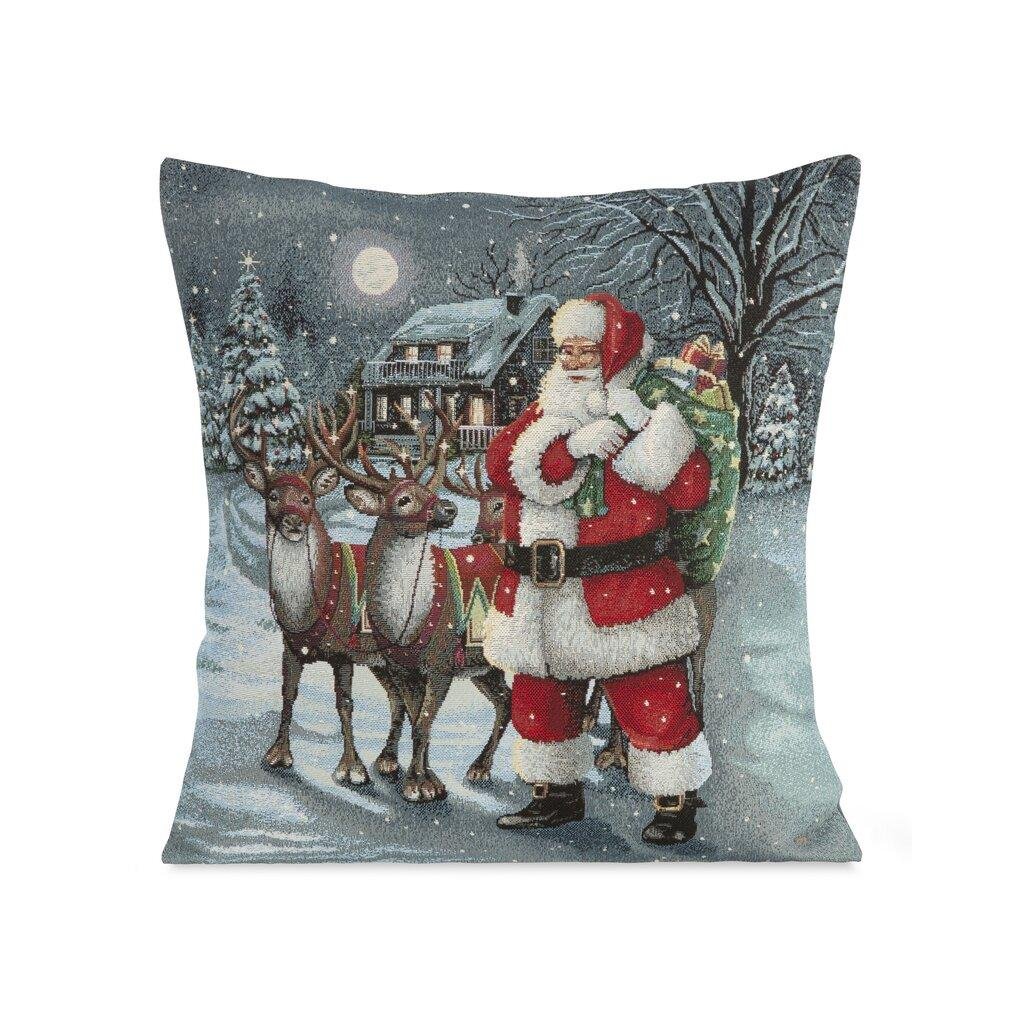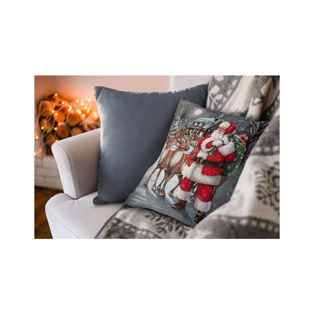 Nádherné gobelínové vánoční povlak na polštář je vyroben z pevného a kvalitního materiálu. Gobelínové povlečení je pevné stálobarevné a snadno se žehlí. Zip všitý na jedné ze stran umožňuje rychlou výměnu povlečení na polštář. Povlak je zdobený z obou stran. Můžete ji využít v obývacím pokoji, jídelně nebo v dětském pokoji.