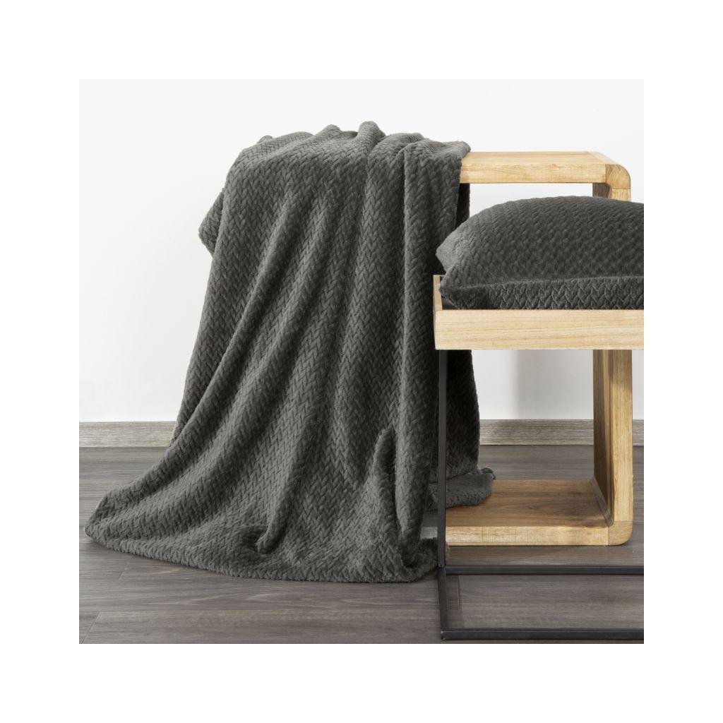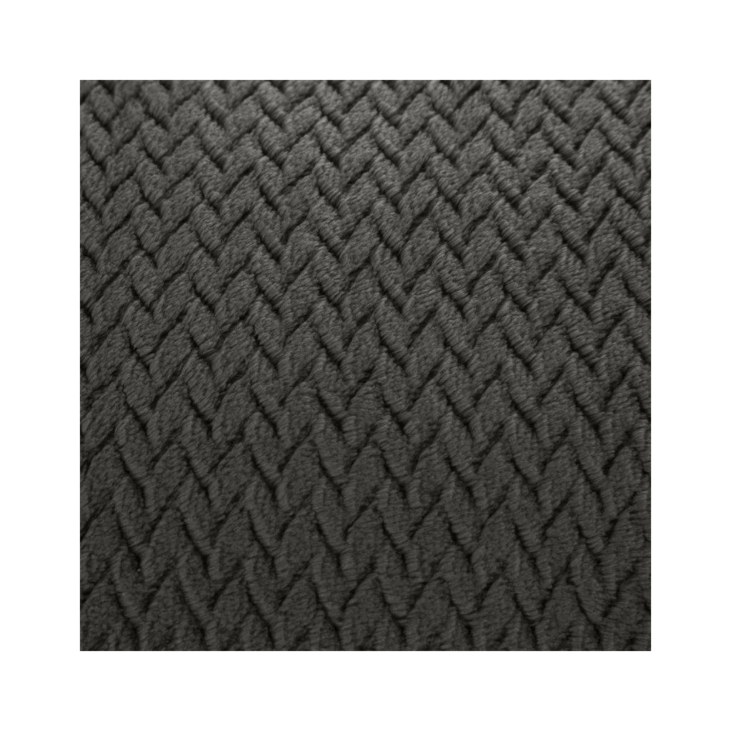 Krásná deka vyrobená z látky příjemné na dotek. Jednobarevná grafitová nadýchaná textura je zdobena minimalistickým vzorem rybích kostí.