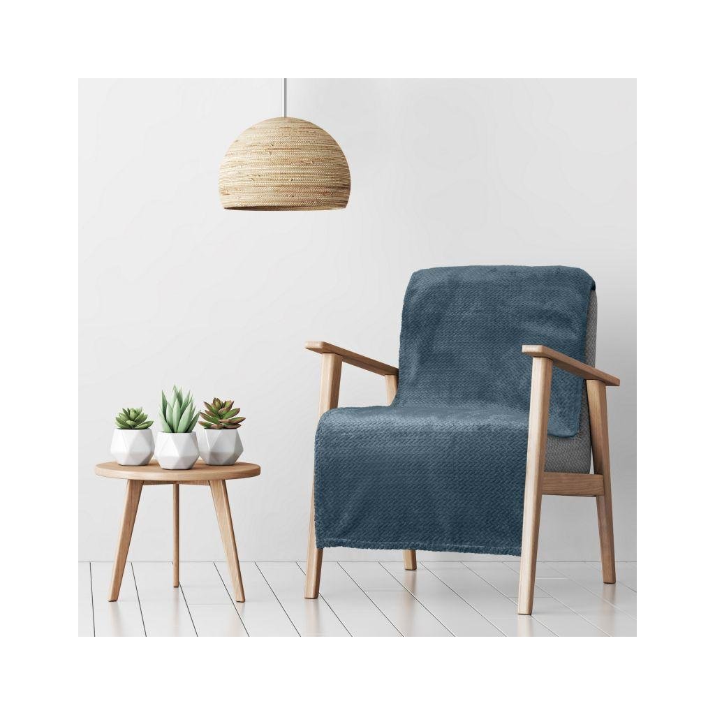 Krásná deka vyrobená z látky příjemné na dotek. Jednobarevná modrá nadýchaná textura je zdobena minimalistickým vzorem rybích kostí.
