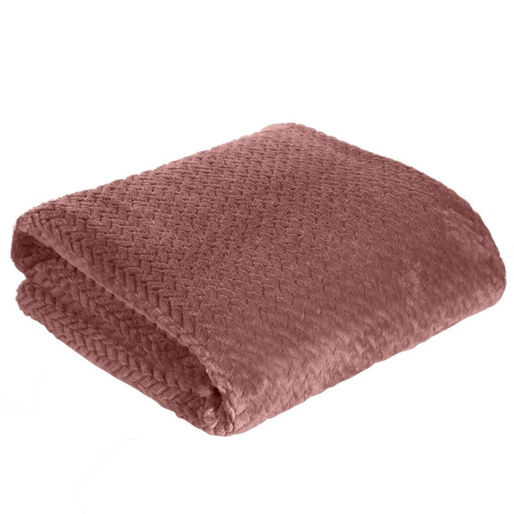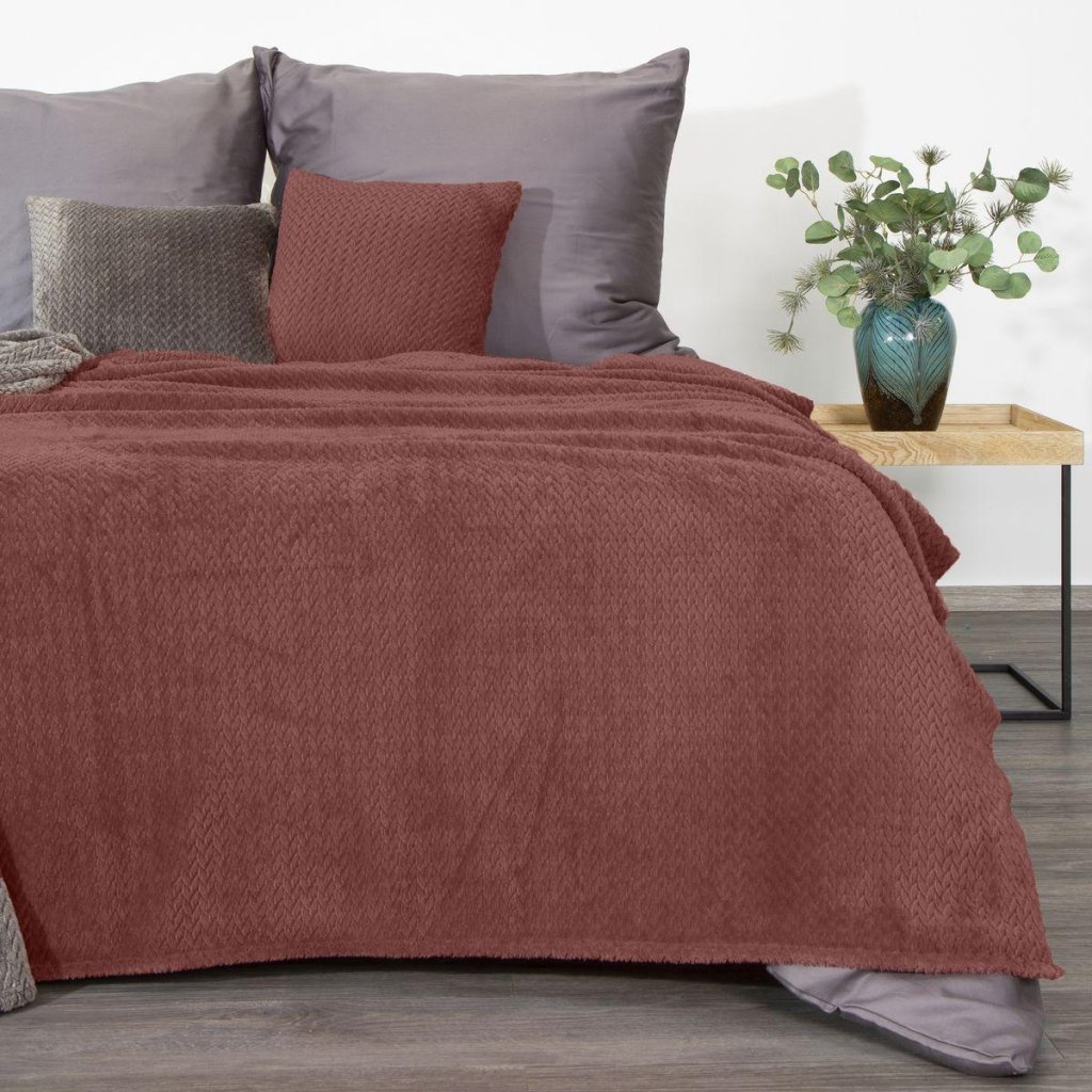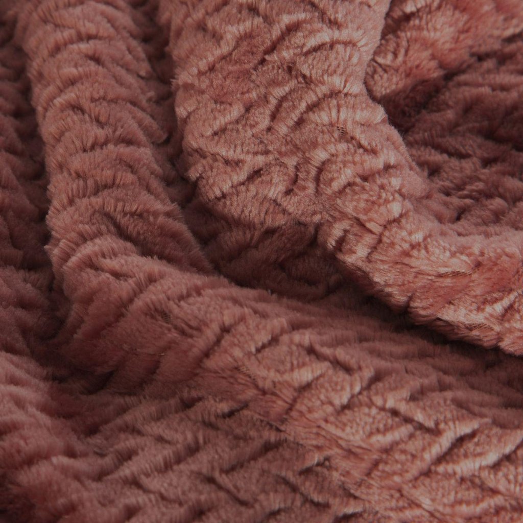 Krásná deka vyrobená z látky příjemné na dotek. Jednobarevná růžová nadýchaná textura je zdobena minimalistickým vzorem rybích kostí.