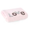 Na dotek příjemná deka růžové barvy se všitým vzorem LOVE.