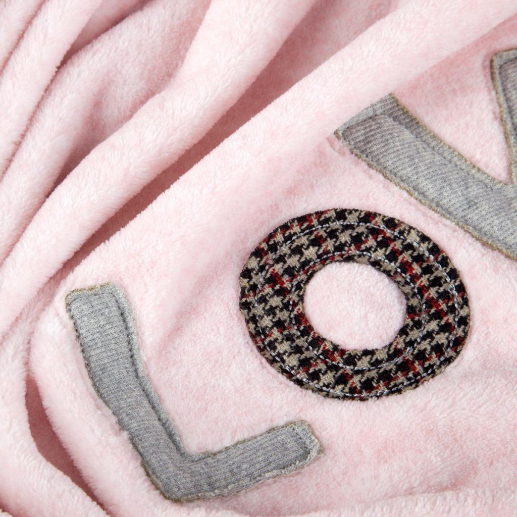 Na dotek příjemná deka růžové barvy se všitým vzorem LOVE.