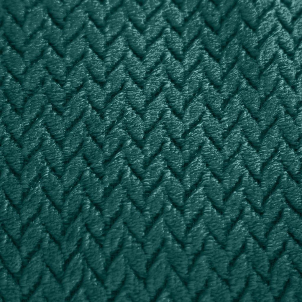 Krásná deka vyrobená z látky příjemné na dotek. Jednobarevná tmavě tyrkysová nadýchaná textura je zdobena minimalistickým vzorem rybích kostí.