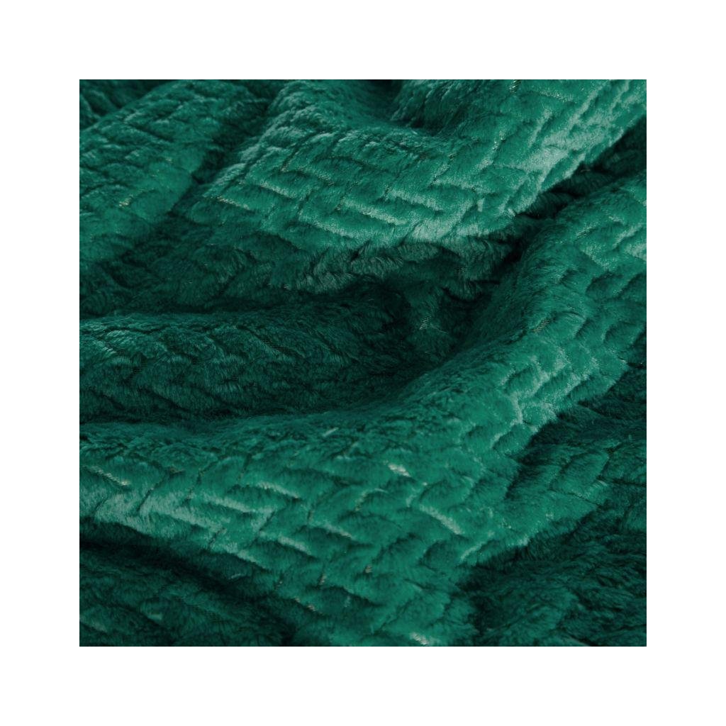 Krásná deka vyrobená z látky příjemné na dotek. Jednobarevná zelená nadýchaná textura je zdobena minimalistickým vzorem rybích kostí