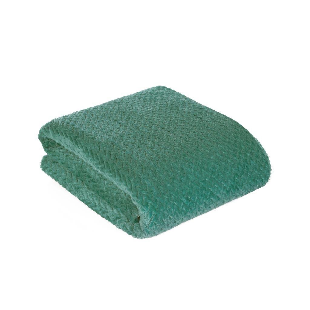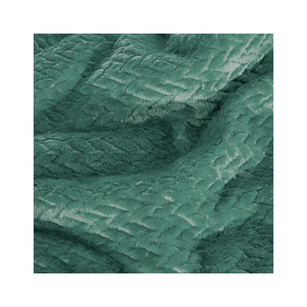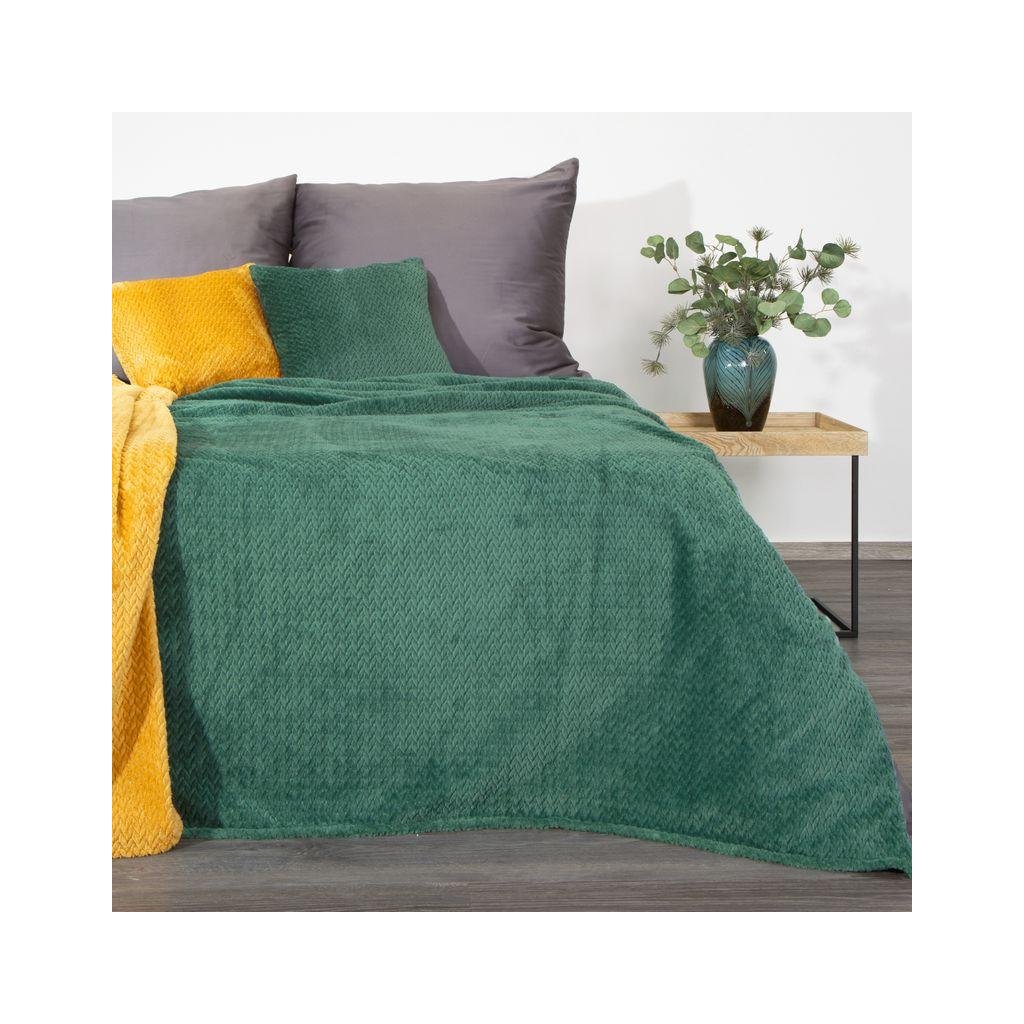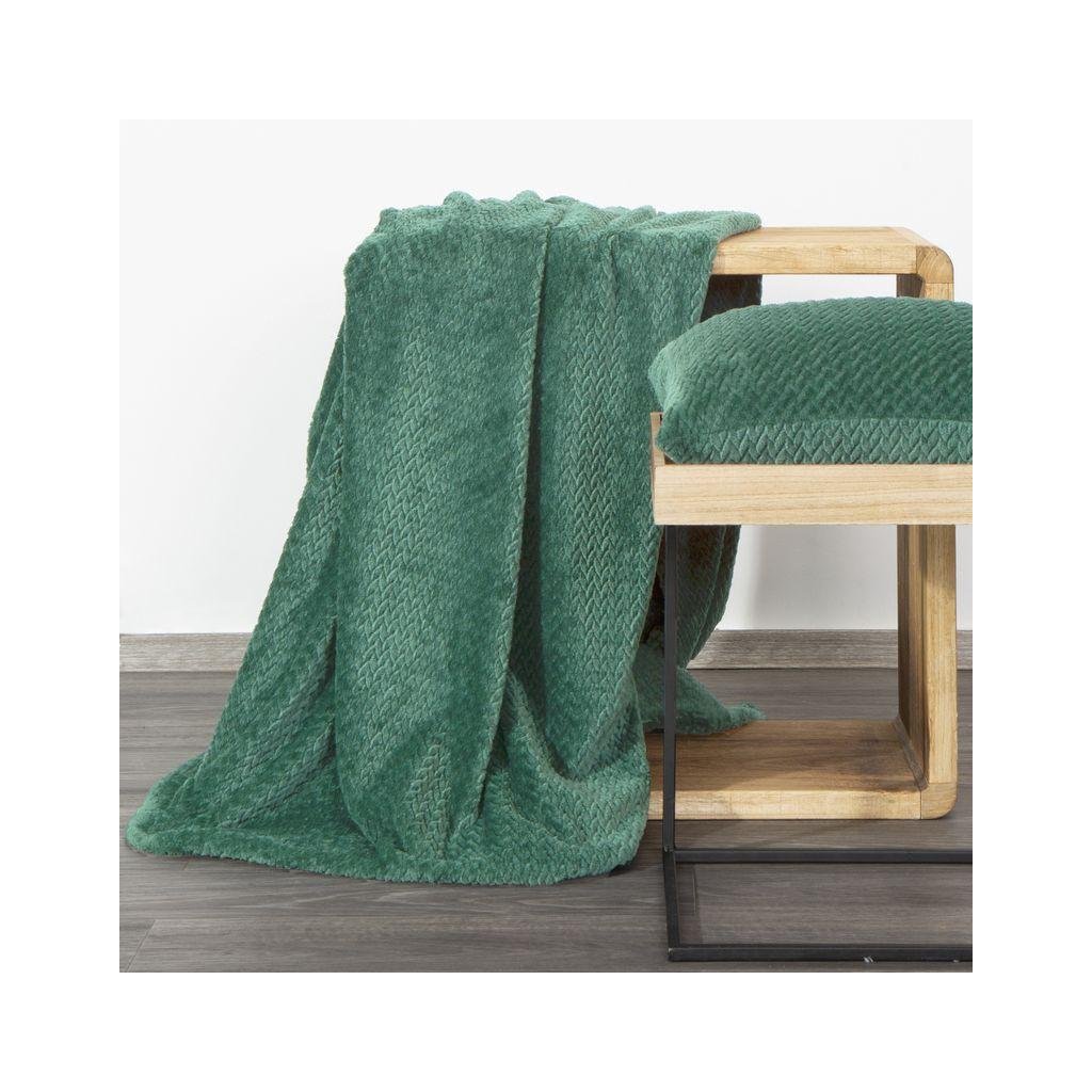 Krásná deka vyrobená z látky příjemné na dotek. Jednobarevná zelená nadýchaná textura je zdobena minimalistickým vzorem rybích kostí. Šířka: 170 cm, délka: 210 cm, barva: tmavě zelená, Gramáž: 250 g/m2, Složení: 100% polyester