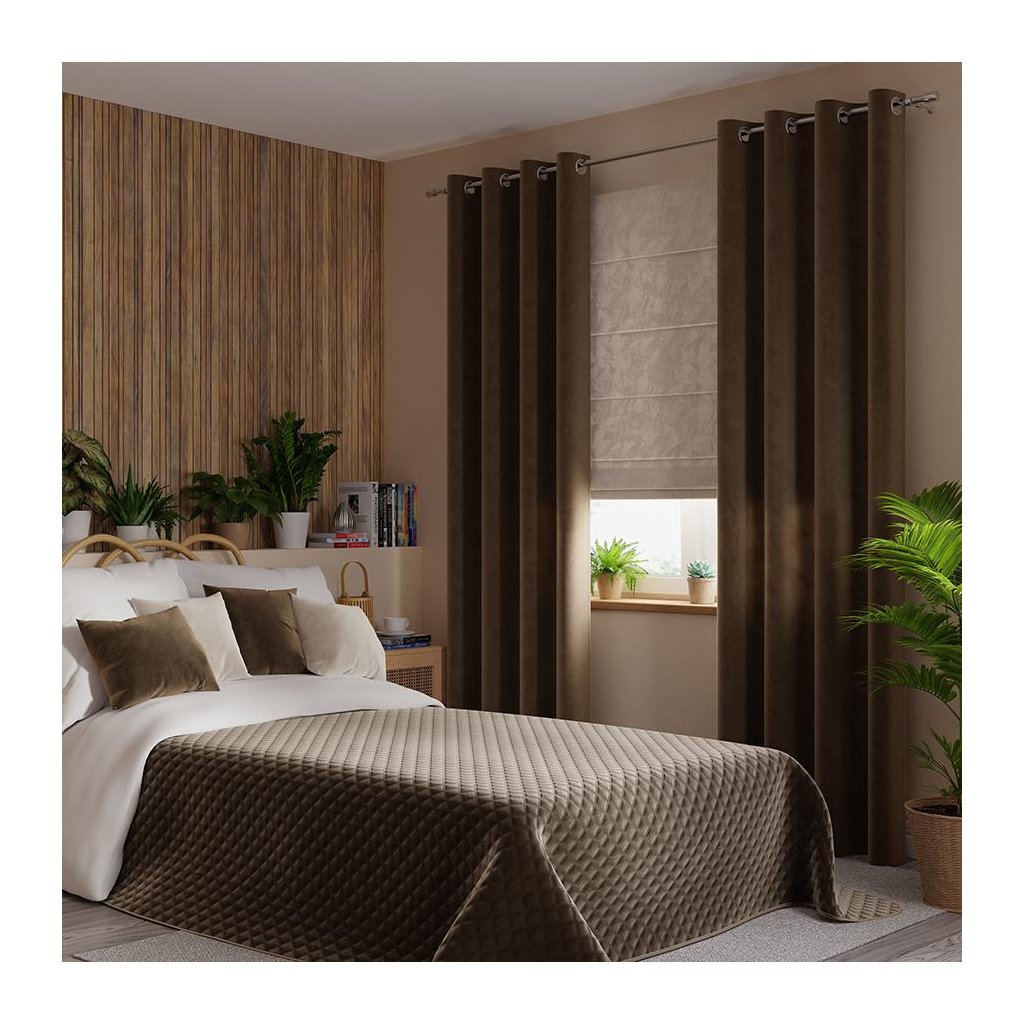 Hnědý sametový závěs na kroužcích VELVI 140x250 cm