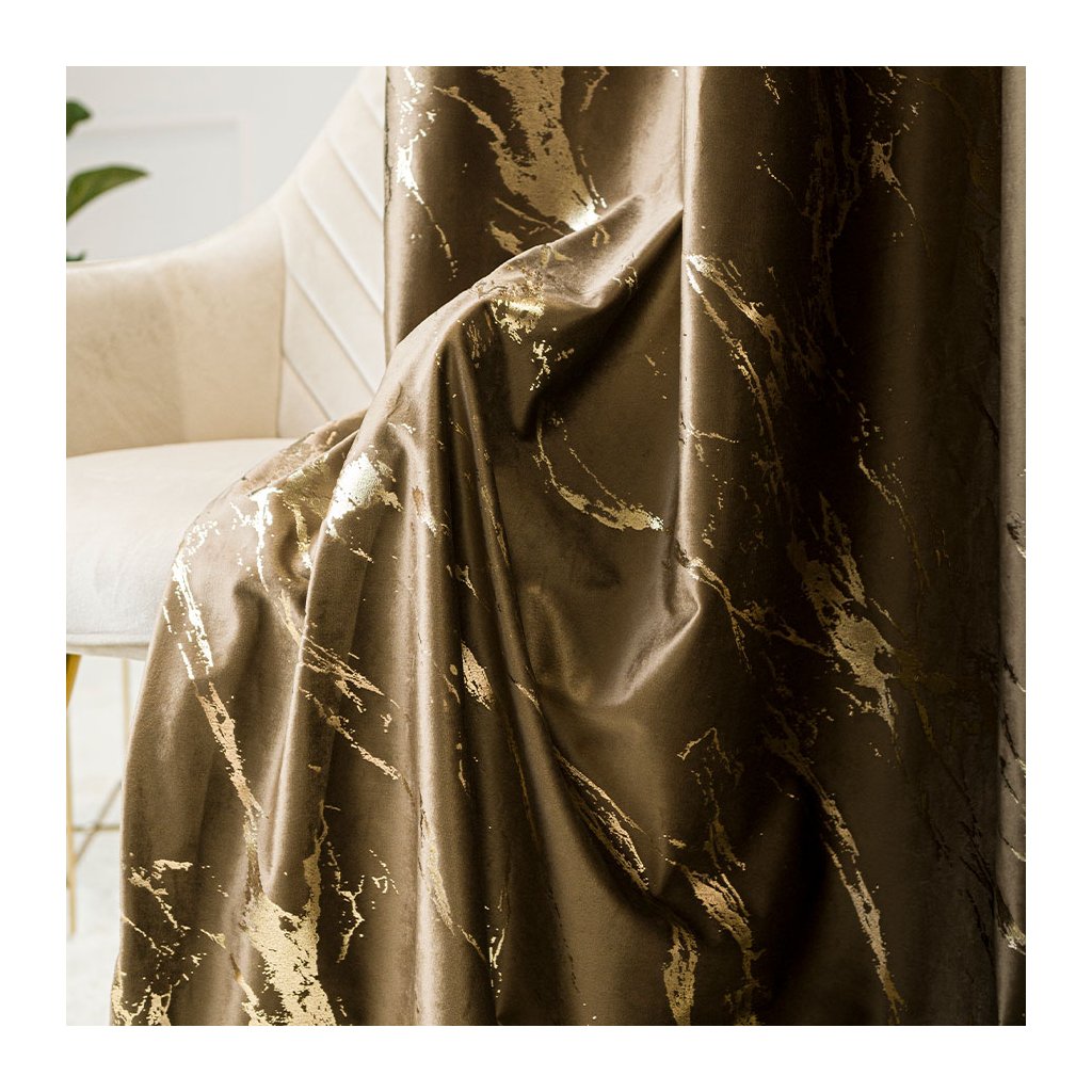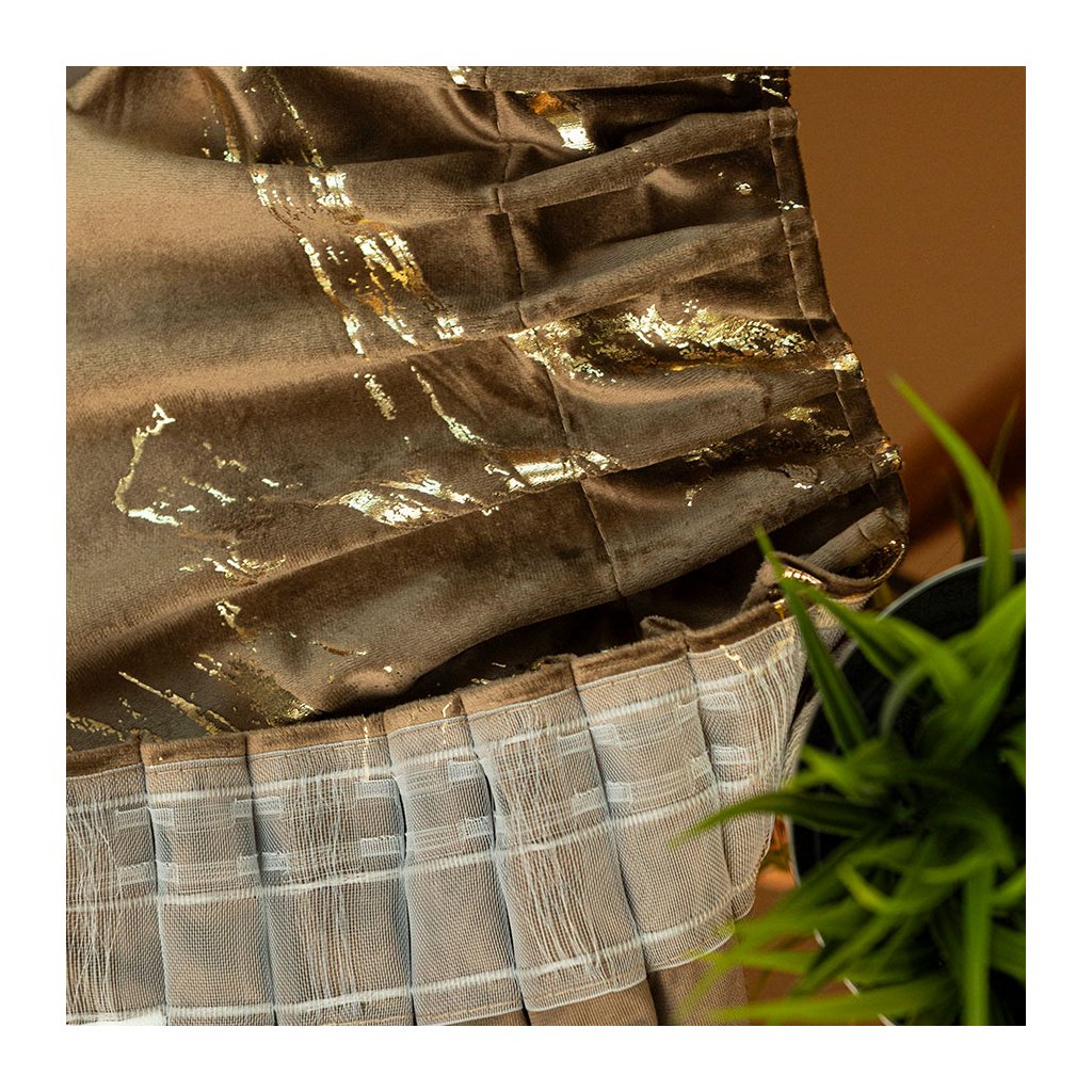 Hnědý sametový závěs se zlatým potiskem na pásce MARMA 140x250 cm
