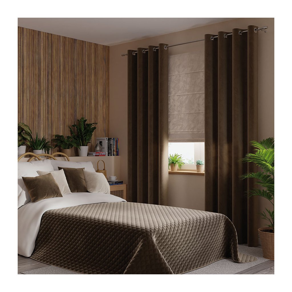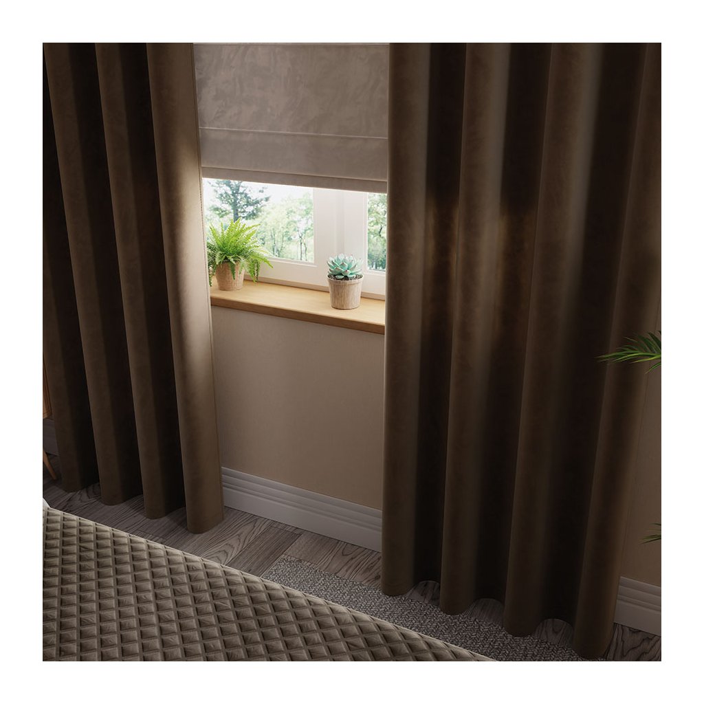 Hnědý zatemňovací sametový závěs na kroužcích VELVI 140x240
