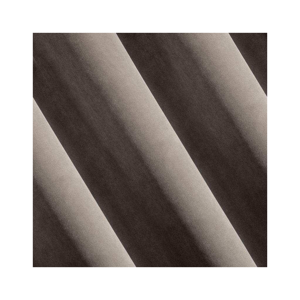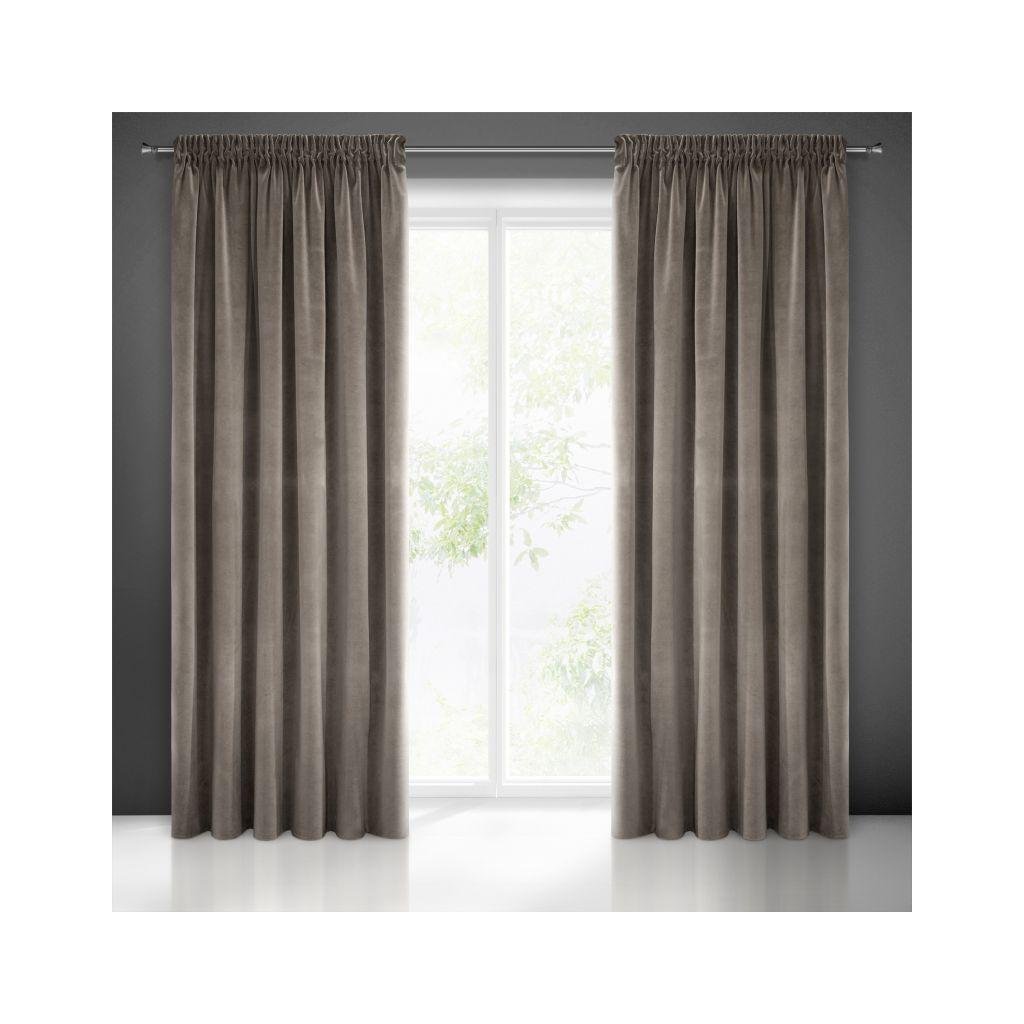 Sametový závěs tmavohnědé barvy. Masivní látka poskytuje vysoký stupeň vnitřního zatemnění. Šířka: 140 cm, délka: 270 cm. Složení: 100% polyester. Praktické zavěšení na řasící pásce.