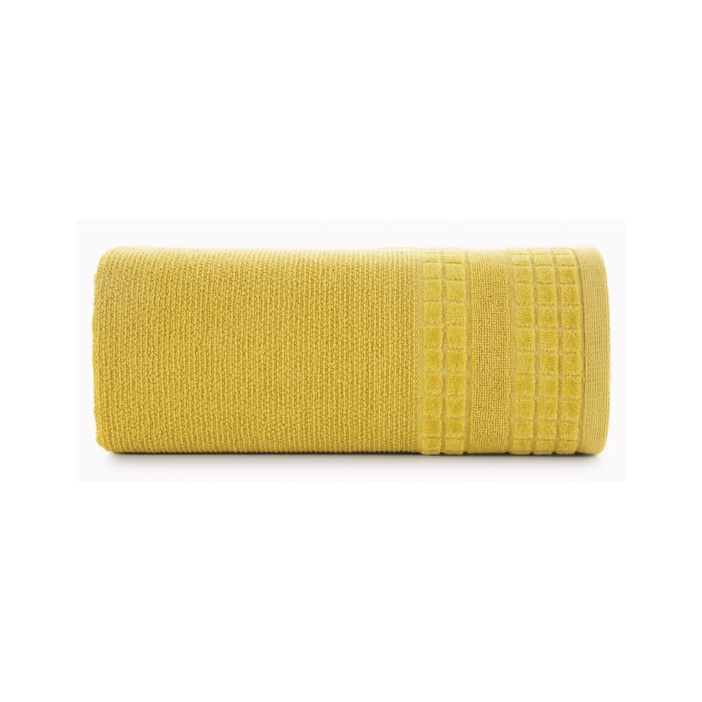 Hořčičný ručník CUBA se zvýrazněným károvaným okrajem 70x140 cm