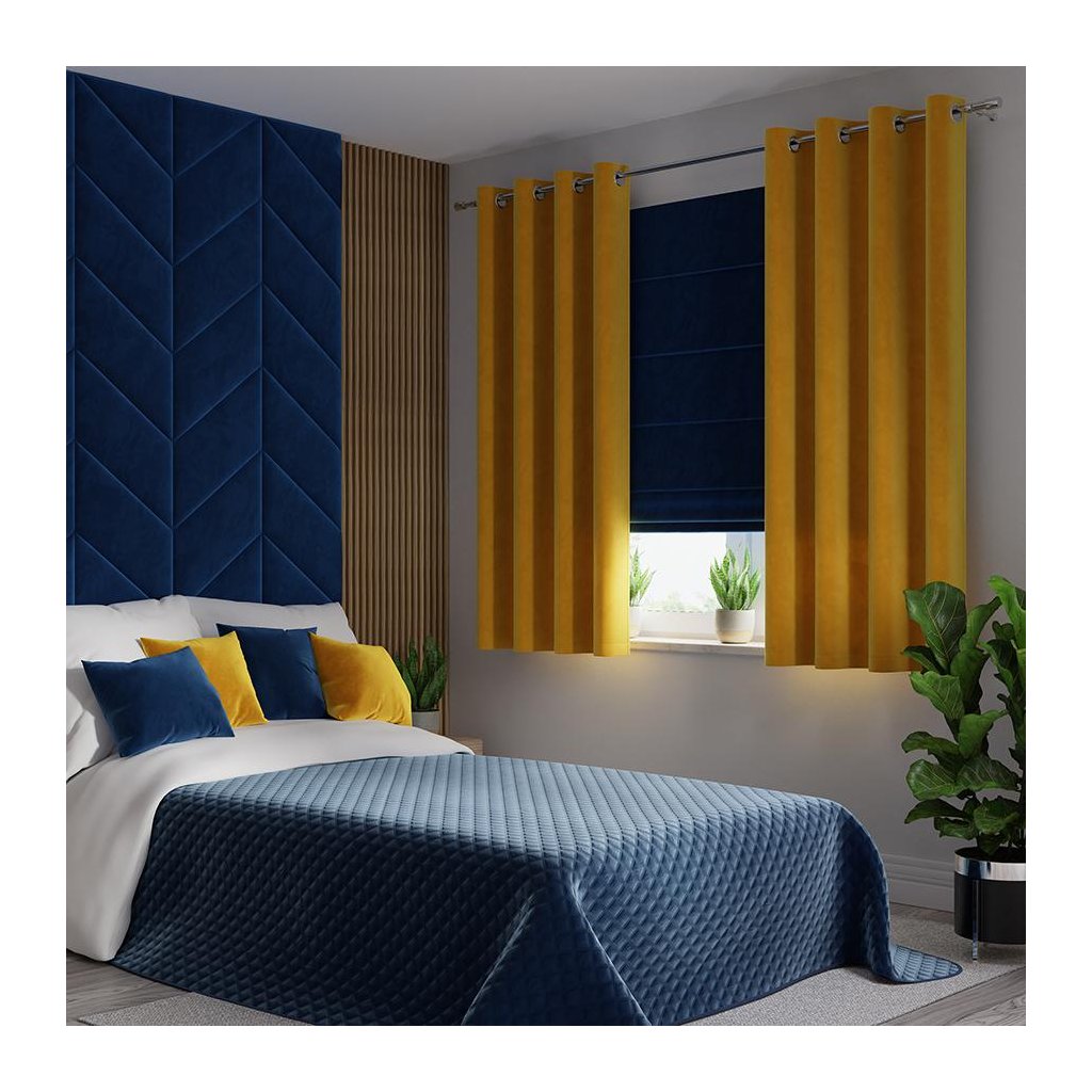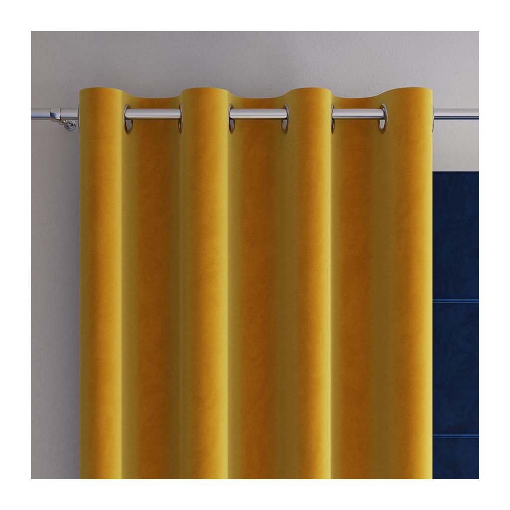 Hořčičný sametový závěs na kroužcích VELVI 140x160 cm