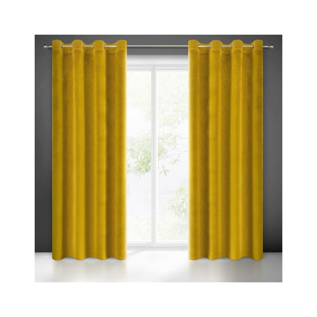 Hořčičný sametový závěs SAMANTA 140x250 cm