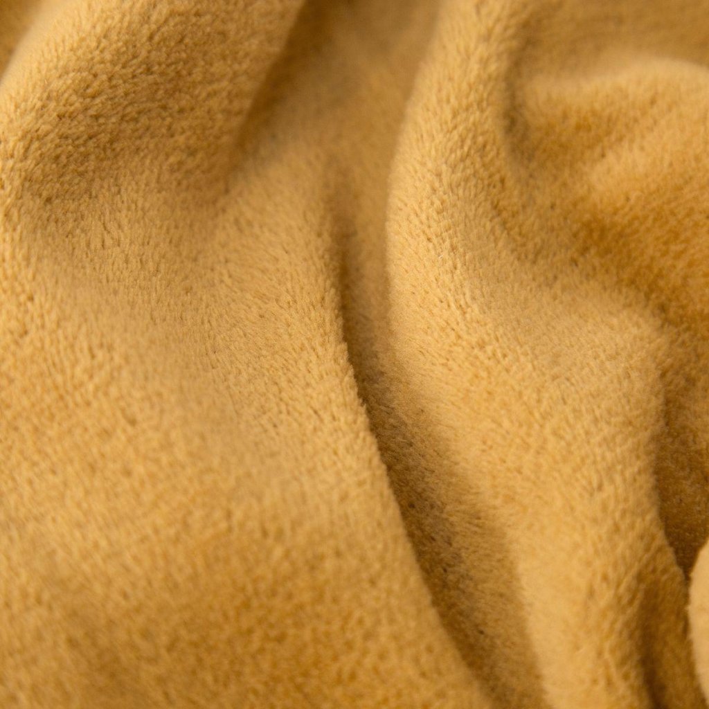 Lehká a velmi teplá deka hořčicové barvy z měkké látky. Vlákna tenčí než hedvábí jsou velmi příjemné na dotek a zároveň vysoce odolné.