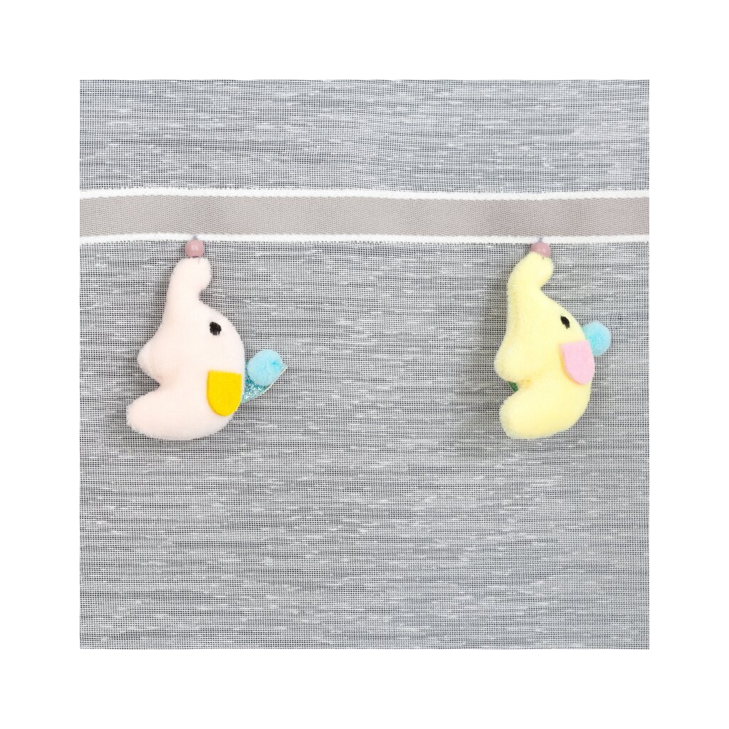 ✅ Veselá dětská záclona KIDS s trojrozměrnými sloníky na ozdobné pásce