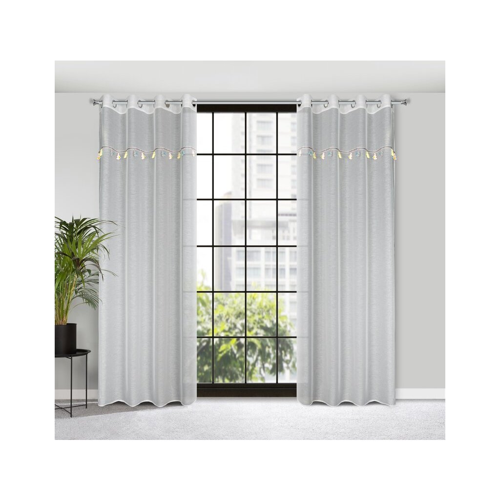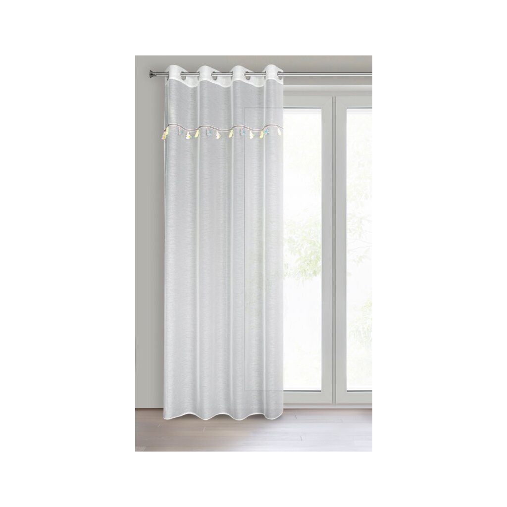 Záclona je vyrobena z lehkého a vzdušného etaminu , který krásně ozdobí okno, aniž by zatemnil interiér. Díky své transparentnosti propouští přirozené denní světlo , čímž vytváří příjemnou atmosféru a zároveň zachovává pocit prostoru a vzdušnosti.