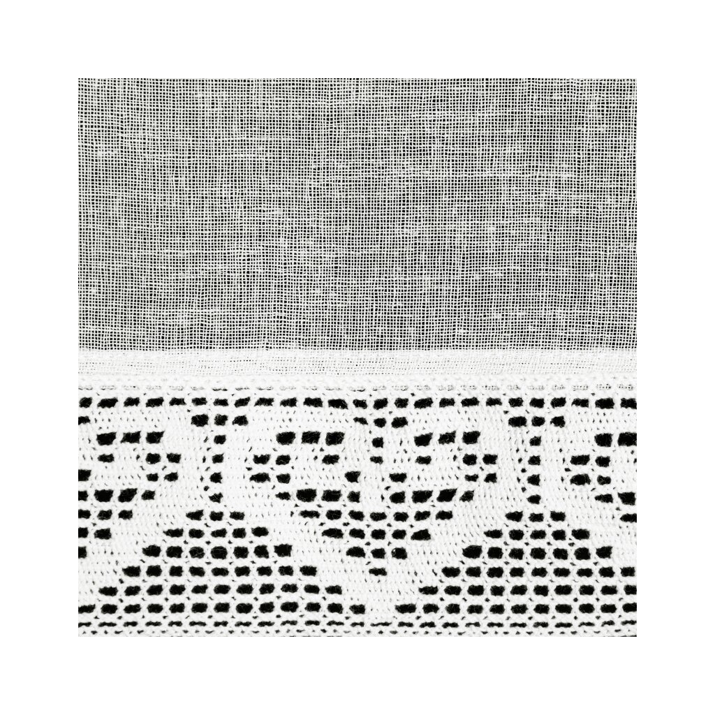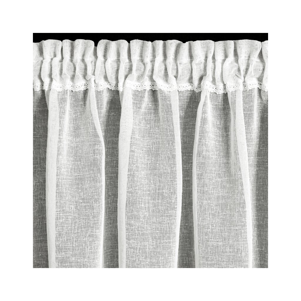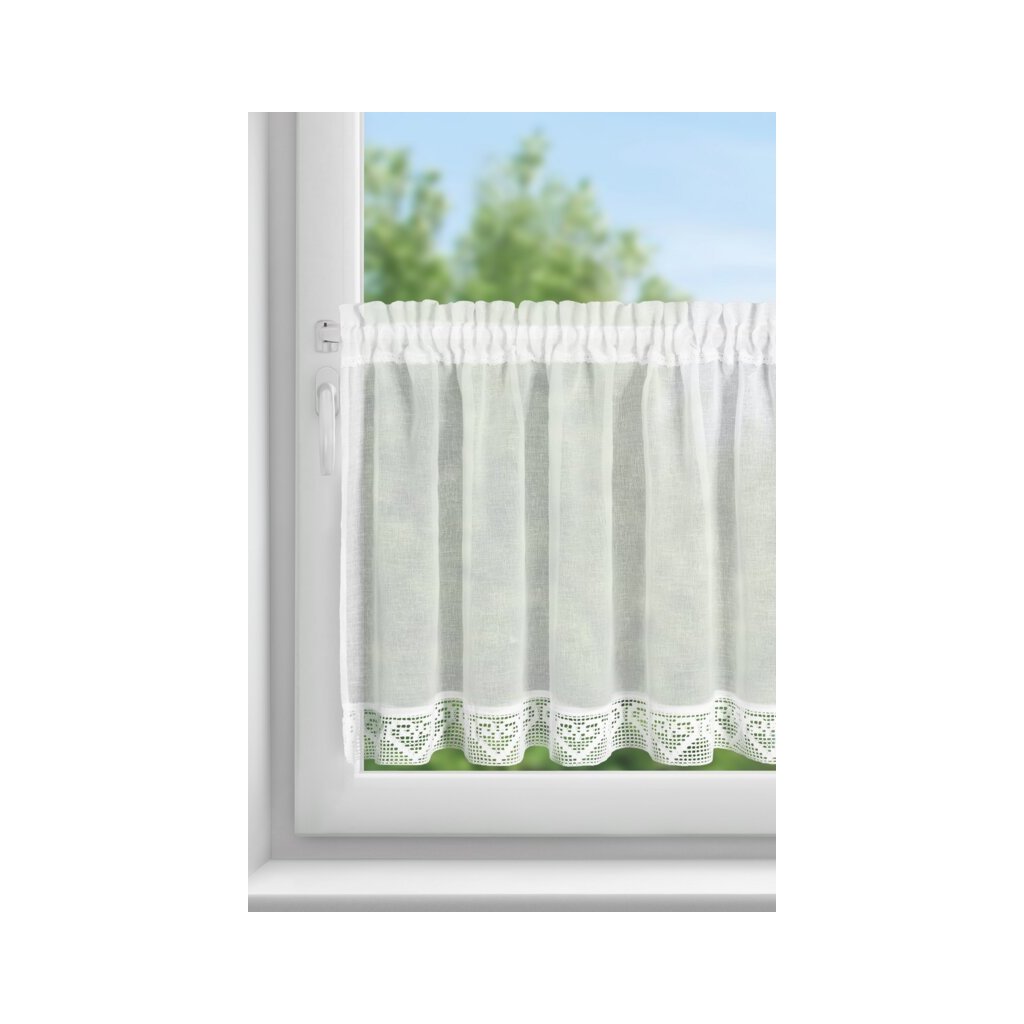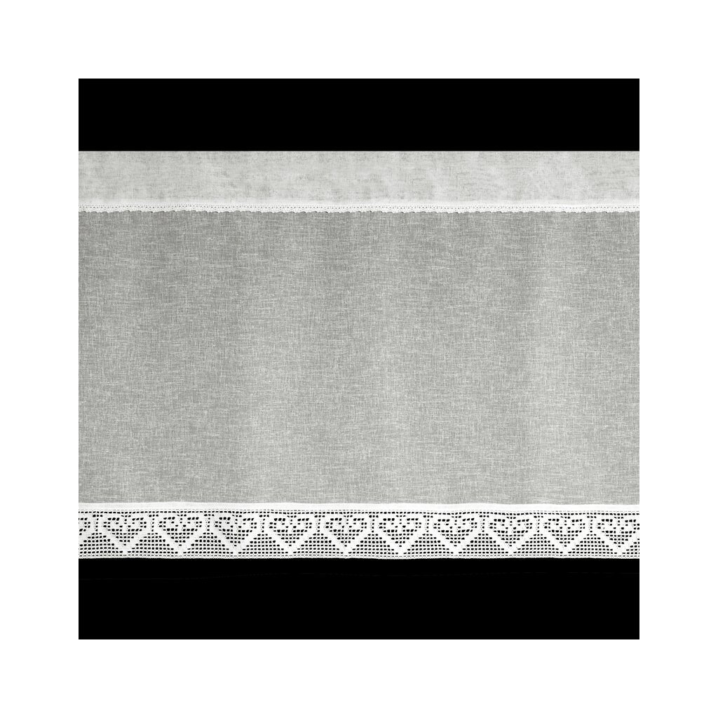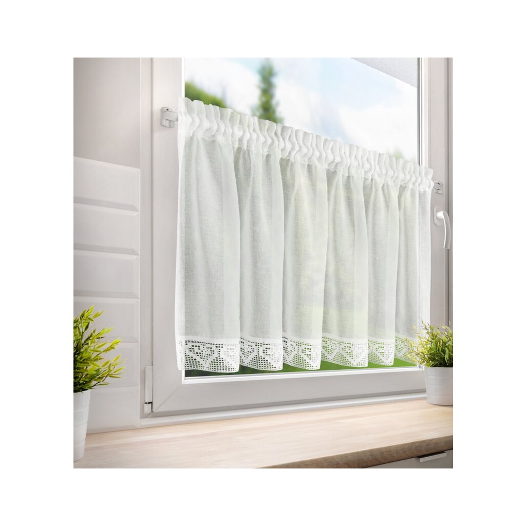 Spodní okraj zdobí dekorativní krajka , která dodává zácloně romantický a elegantní charakter. Je to ideální volba, pokud chcete svému oknu přidat jemný dekorativní prvek , který zútulní celou místnost.