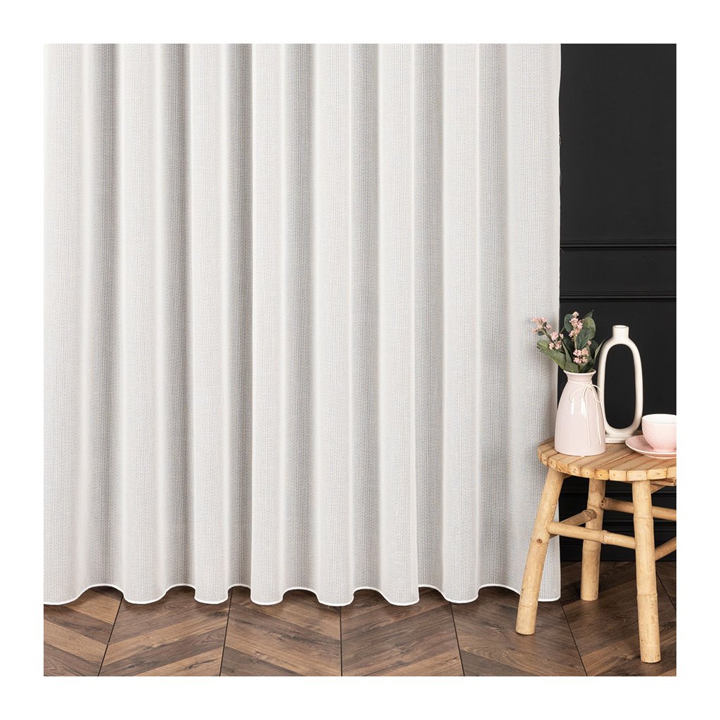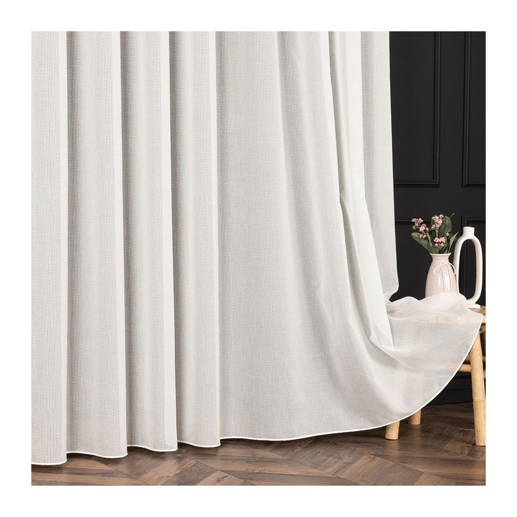 Krémová záclona MELINDA s jemnou pruhovanou strukturou ukončená olůvkem