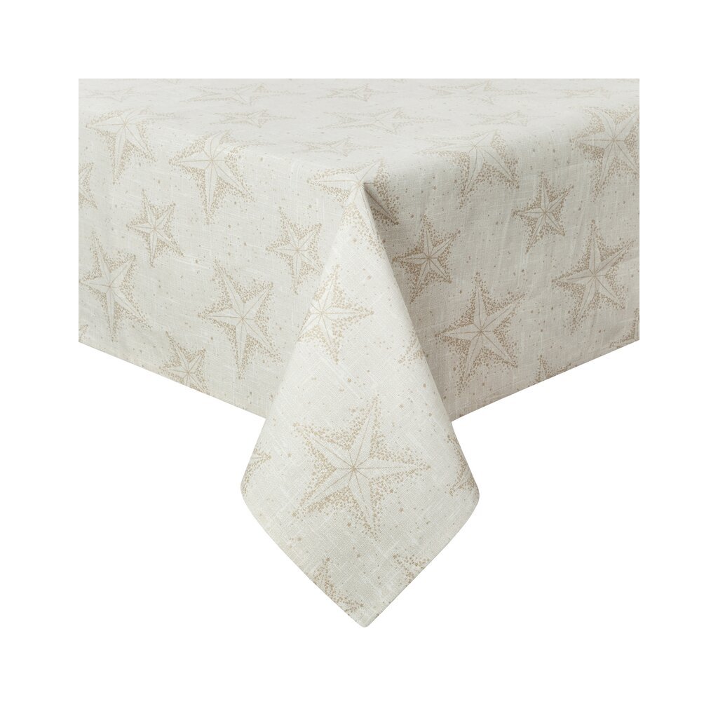 Krémovozlatý vánoční bavlněný ubrus s hvězdičkami WINTER 140x180 cm