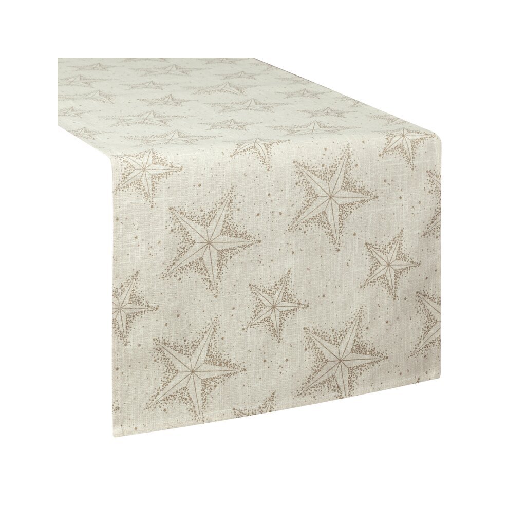 Krémovozlatý vánoční bavlněný ubrus s hvězdičkami WINTER 40x140 cm