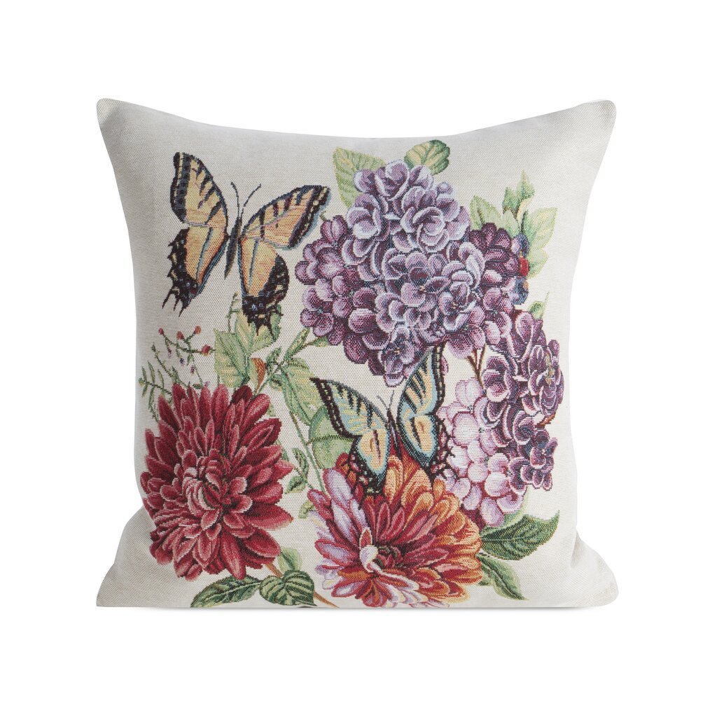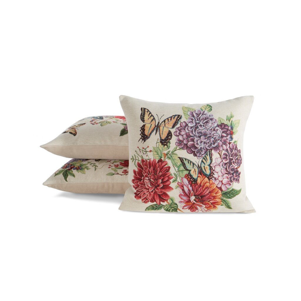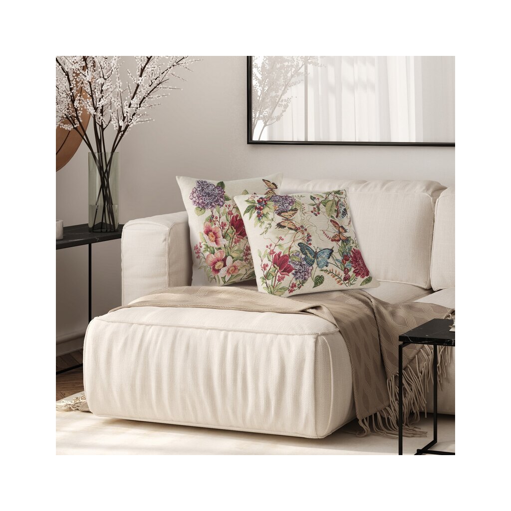 Krémový povlak na polštář s rostlinným vzorem z bavlněného saténu dekor 02 SPRING 45x45 cm