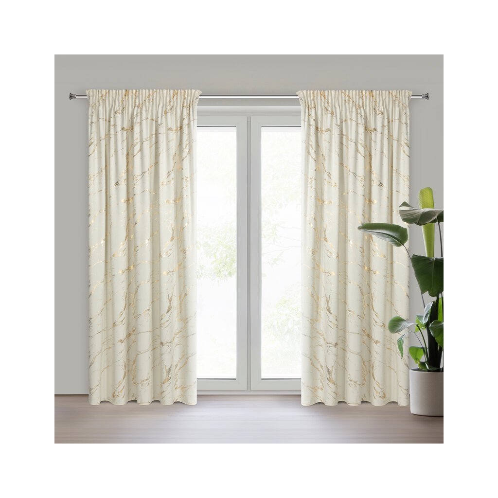 Krémový sametový závěs s lesklým mramorovým efektem na pásce MOLLY 140x270 cm